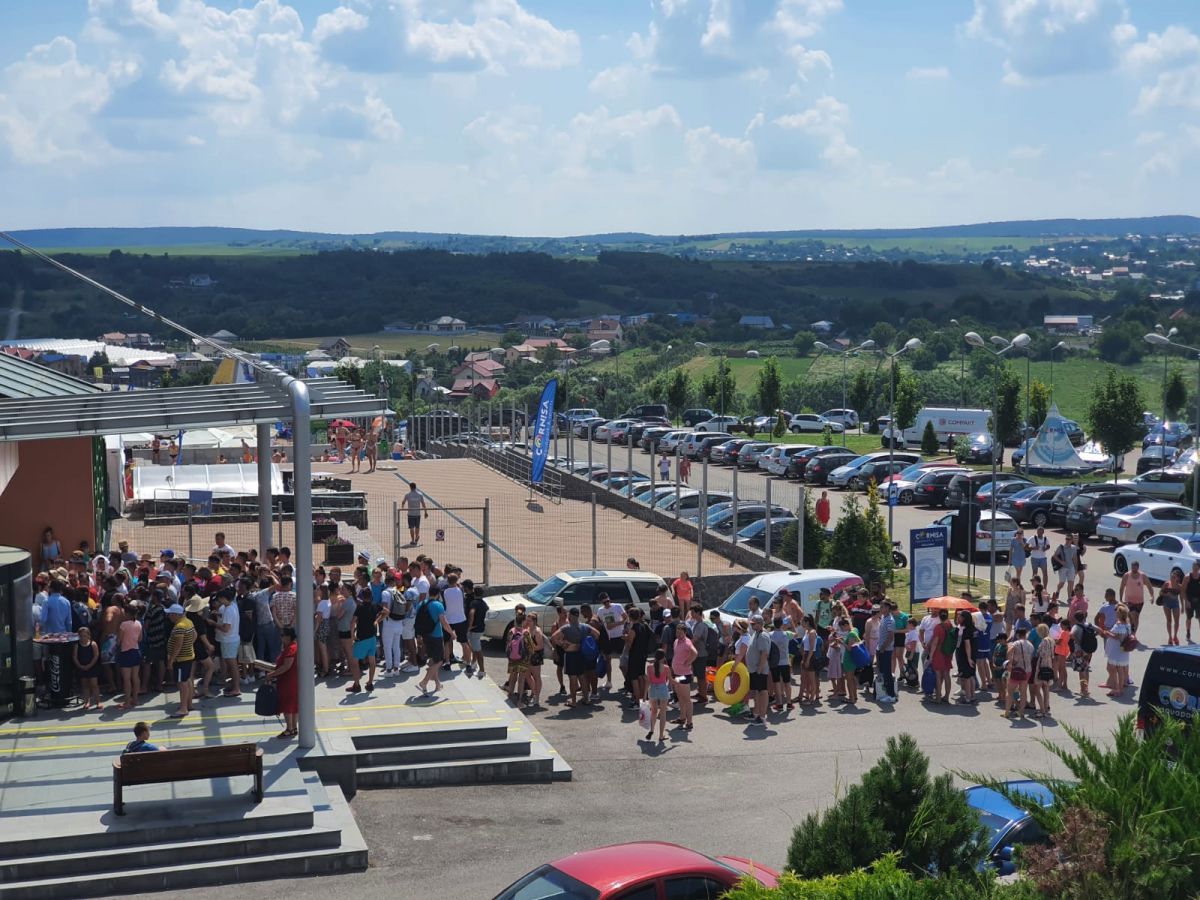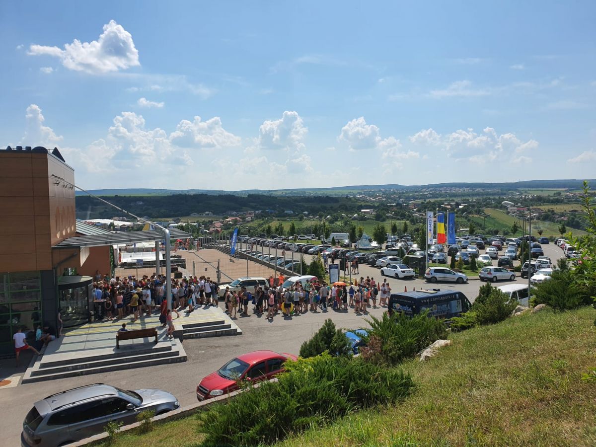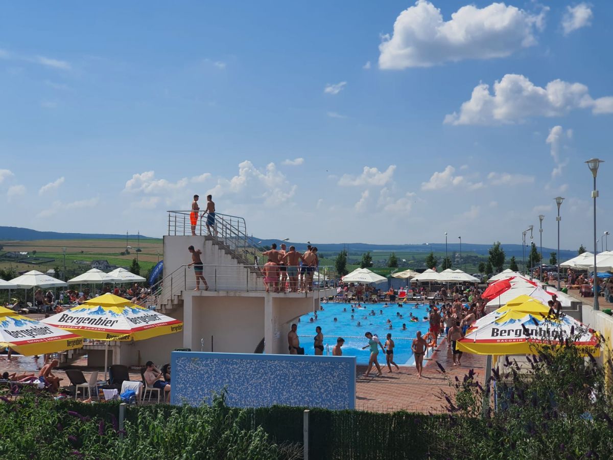 Și la intrarea în complex pentru piscina exterioară, aceeași imagine a oamenilor care așteaptă (ne)răbdători să cumpere bilete pentru a se bucura de apă și soare. Au fost zile în care numărul celor care au cumpărat bilete a trecut pragul de 1.000 de oameni.