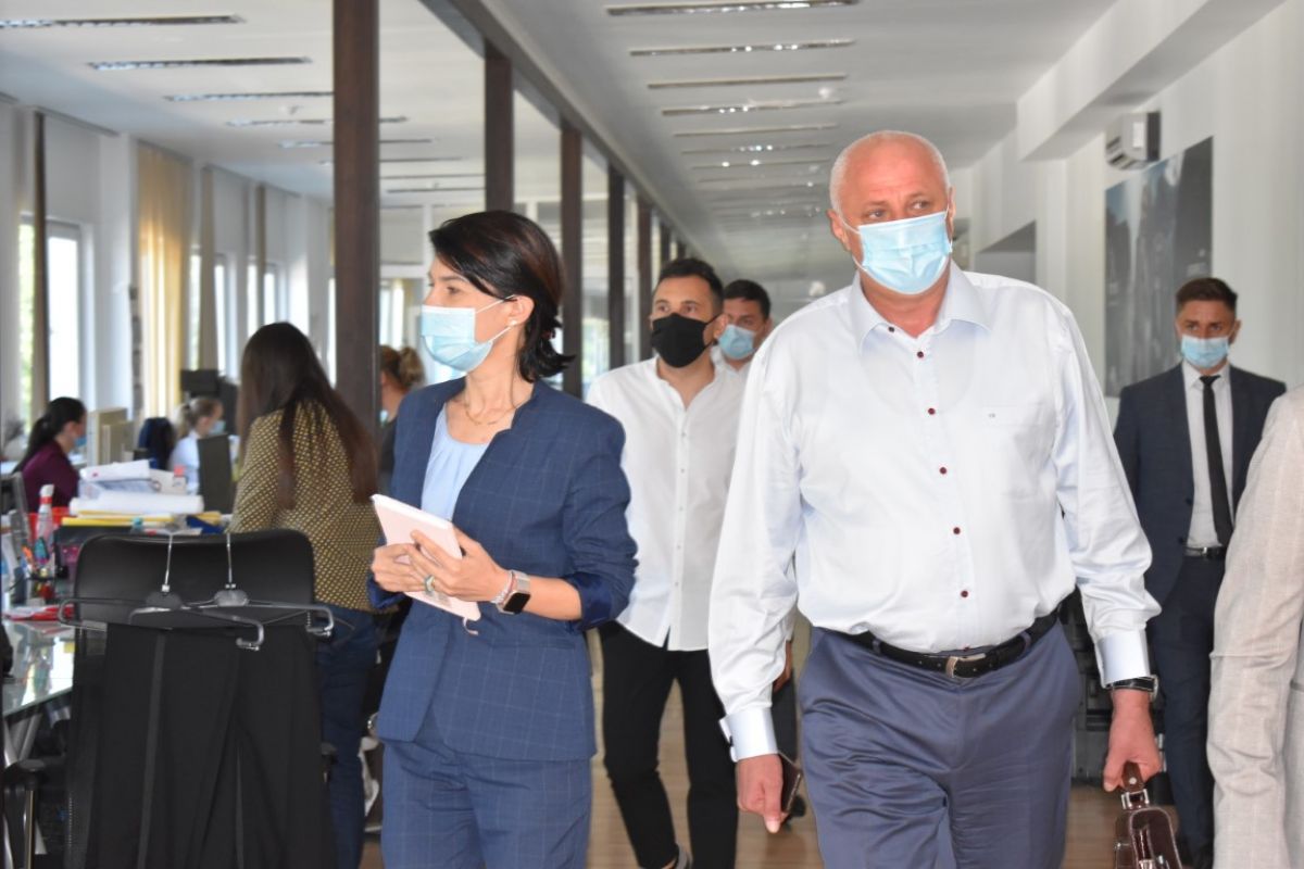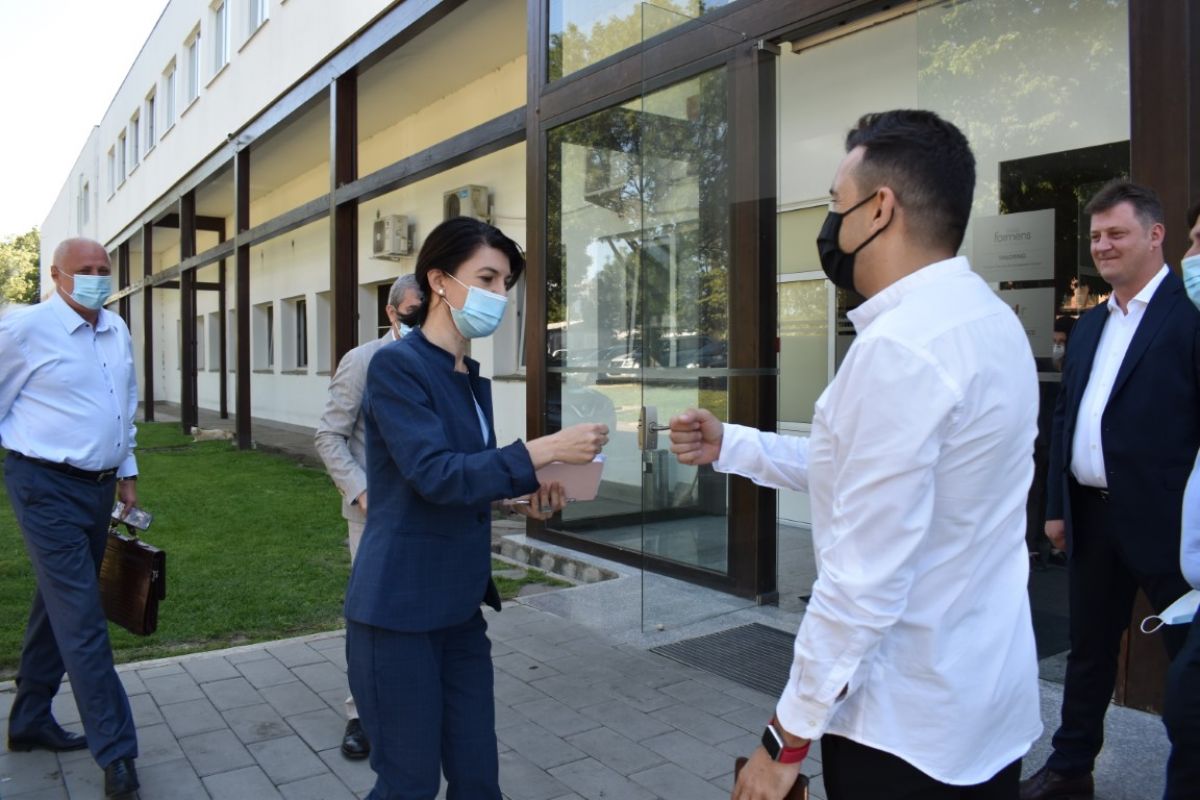 A avut loc puțin peste ora 10:00, la sediul companiei Formens, unde Violeta Alexandru a ajuns însoțită de președintele PNL Botoșani, Costel Șoptică, cel care a intermediat vizita de la Botoșani.