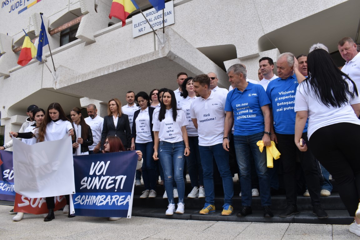 Valeriu Iftime a ajuns în Piața Revoluției înconjurat de tineri în marea lor parte și cu mici excepții, liberali din rândul seniorilor. Echipa de campanie a gândit depunerea candidaturilor drept un prilej pentru a transmite și o serie de mesaje către botoșăneni, inscripționate pe tricouri de culoare albă. Singurii cu tricouri de culoare albastră au fost Valeriu Iftime și Cătălin Flutur, candidatul PNL la Primăria Botoșani.