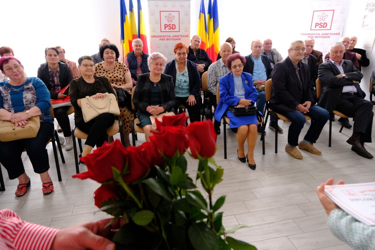 De ziua lor, membrii PSD Botoșani și-au arătat respectul față de persoanele în vârstă, dăruindu-le flori, diplome de onoare, dar și îmbrățișări sincere.