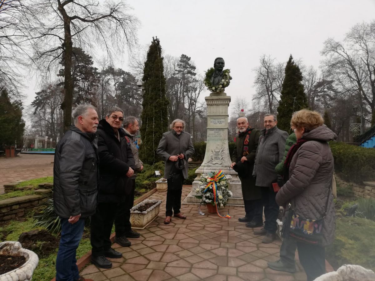 Gellu Dorian, Dumitru Necșanu, Nicolae Corlat, George Luca, Cristina Șoptelea, Mircea Oprea, Vlăduț Scutelnicu, Mihai Babei, Gabriel Alexe, Cezar Ciobîcă, dar și pictorul Liviu Șoptelea l-au omagiat pe Mihai Eminescu la împlinirea a 173 de ani de la naștere.