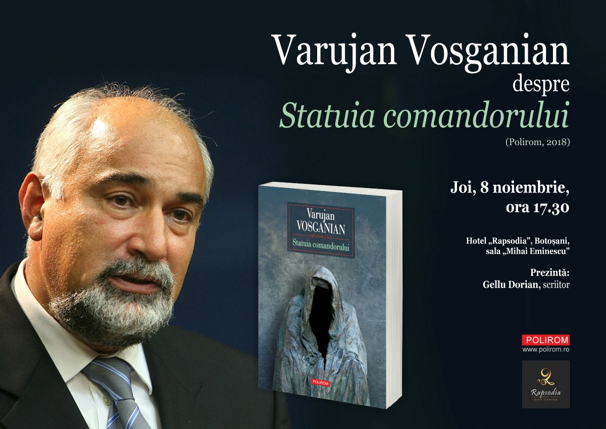 Botoşănenii sunt invitaţi la lansarea cărţii „Statuia Comandorului” de Varujan Vosganian.