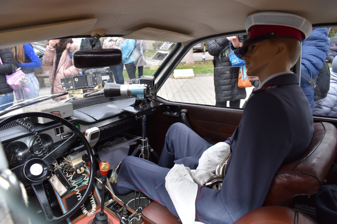 Mașina era dotată cu detector radar, stație emisie-recepție, baston dar și un manechin îmbrăcat în uniforma de Miliție din timpul regimului comunist.