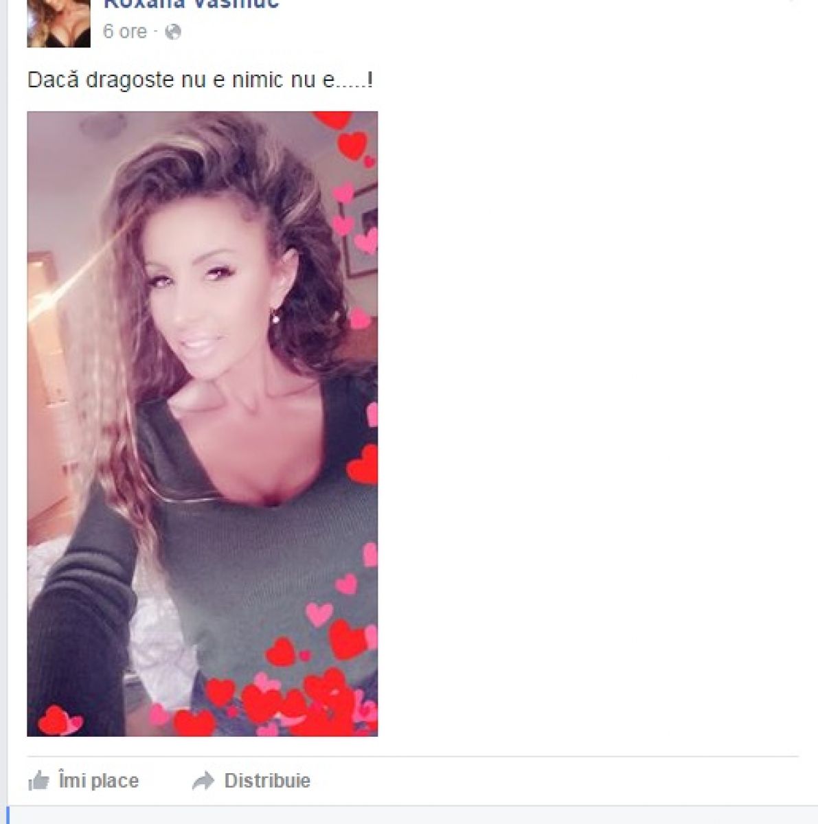 Fosta prezentatoare TV, Roxana Vașniuc și-a făcut un selfie și a scris pe Facebook: ”Dacă dragoste nu e nimic nu e.....!”. Blondina de la Botoșani se pregătește să îmbrace rochia de mireasă și să spună ”Da” în fața ofițerului de stare civilă. De altfel, înainte de nuntă ,Roxana vrea să facă o vizită la o clinică de specialitate pentru a-și mări sânii.