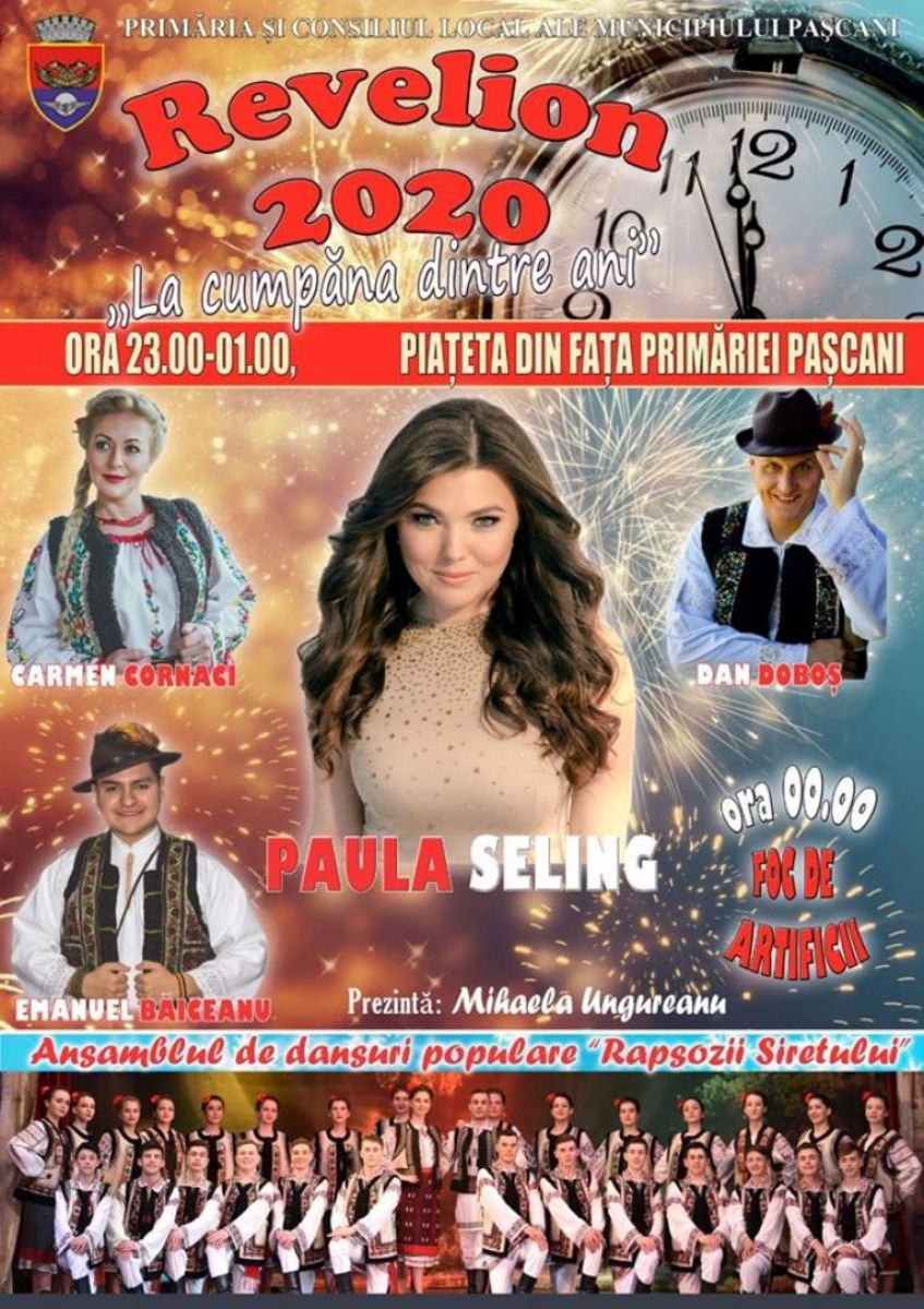 Ca atare, după ce în jurul orei 20:30 a cântat în Piața Revoluției din Botoșani, Paula Seling a plecat la Pașcani, la spectacolul ”Revelion 2020, la cumpăna dintre ani”, finanțat de Primărie și Consiliul Local. Culmea, acolo dubla reprezentantă a României la Eurovision a fost colegă de scenă cu doi botoșăneni: Carmen Cornaci și Dan Doboș.