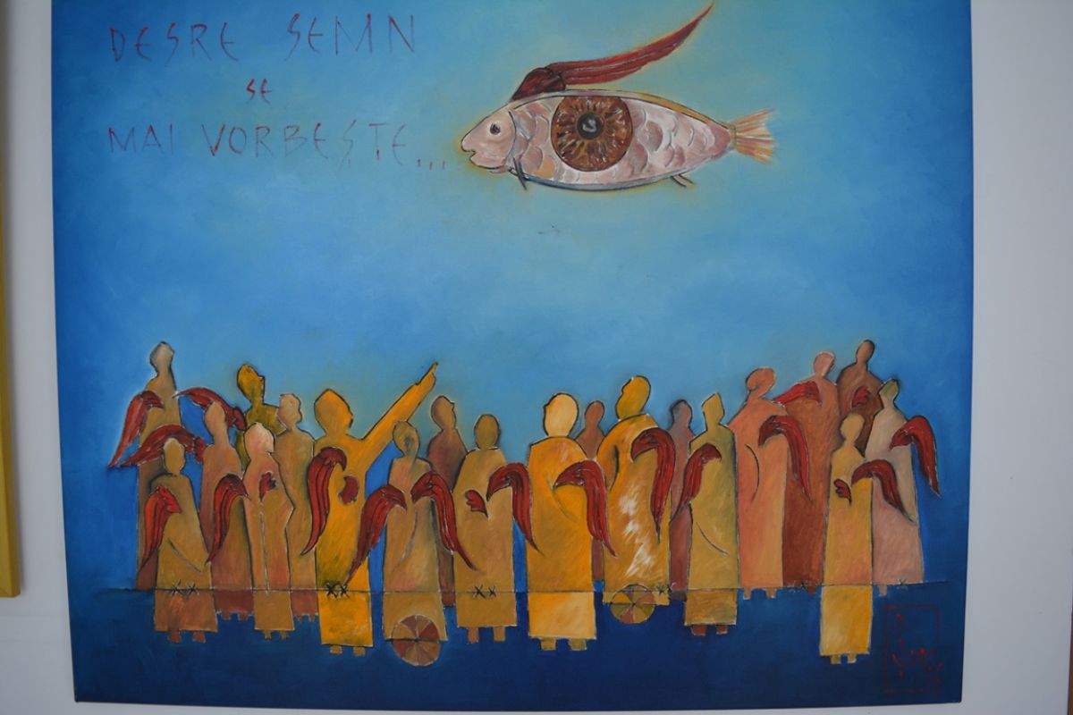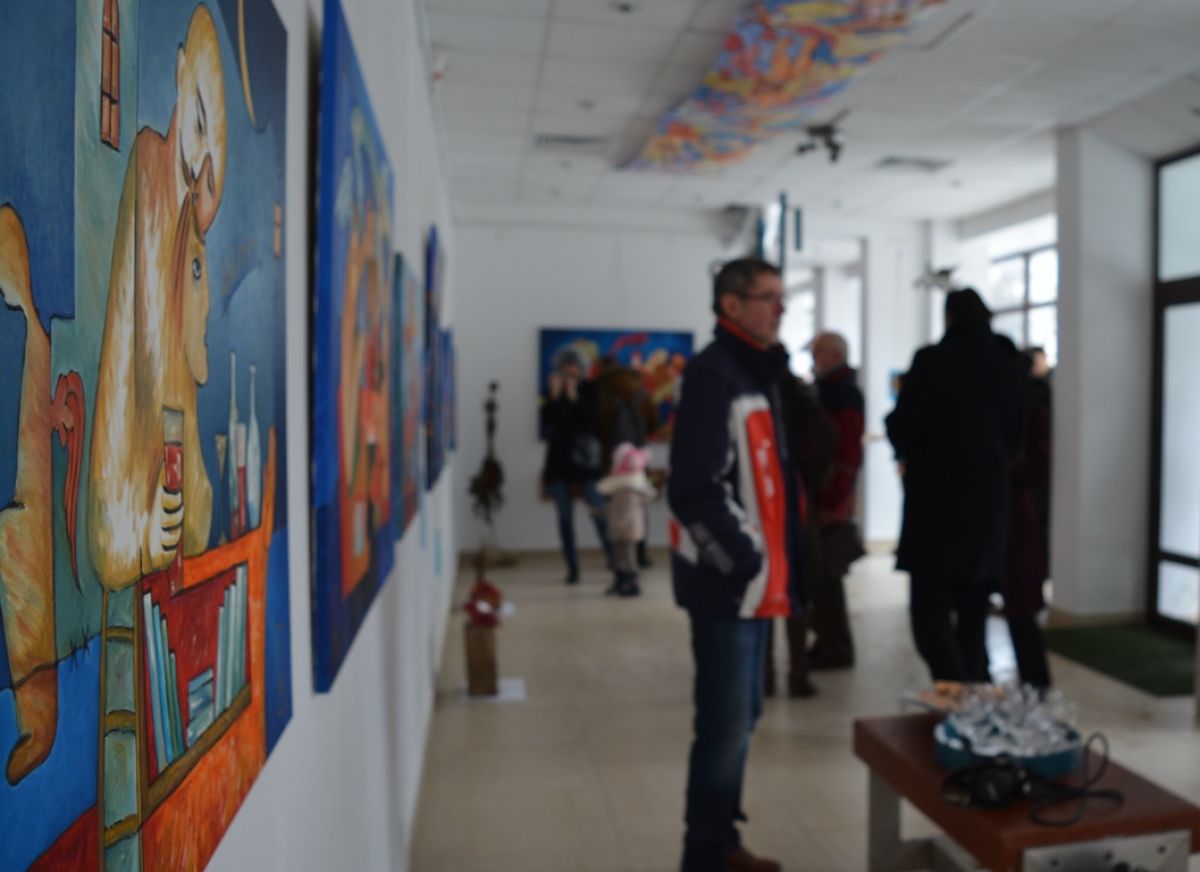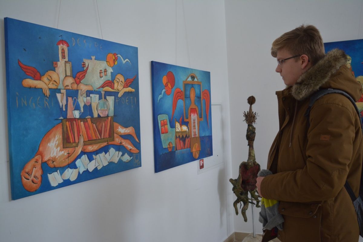 Îngerii urbani din expoziția aniversară a artistului plastic, care invită atât la retrospecție, cât și la introspecție, a umplut Galeriile de Artă, lucru care nu se întâmplă deseori la evenimente culturale, iar printre cei prezenți s-a aflat și fosta directoare a Muzeului Județean, în cadrul căruia funcționează Galeriile de Artă.