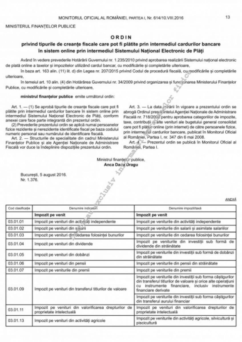 De altfel, lista taxelor şi impozitelor pe care contribuabilii persoane fizice le pot plăti acum de acasă sau de la serviciu, prin intermediul sistemului electronic de plăţi, a fost extinsă joi, odată cu publicarea în acest sens a unui act normativ în Monitorul Oficial. Sursa: Dc News.