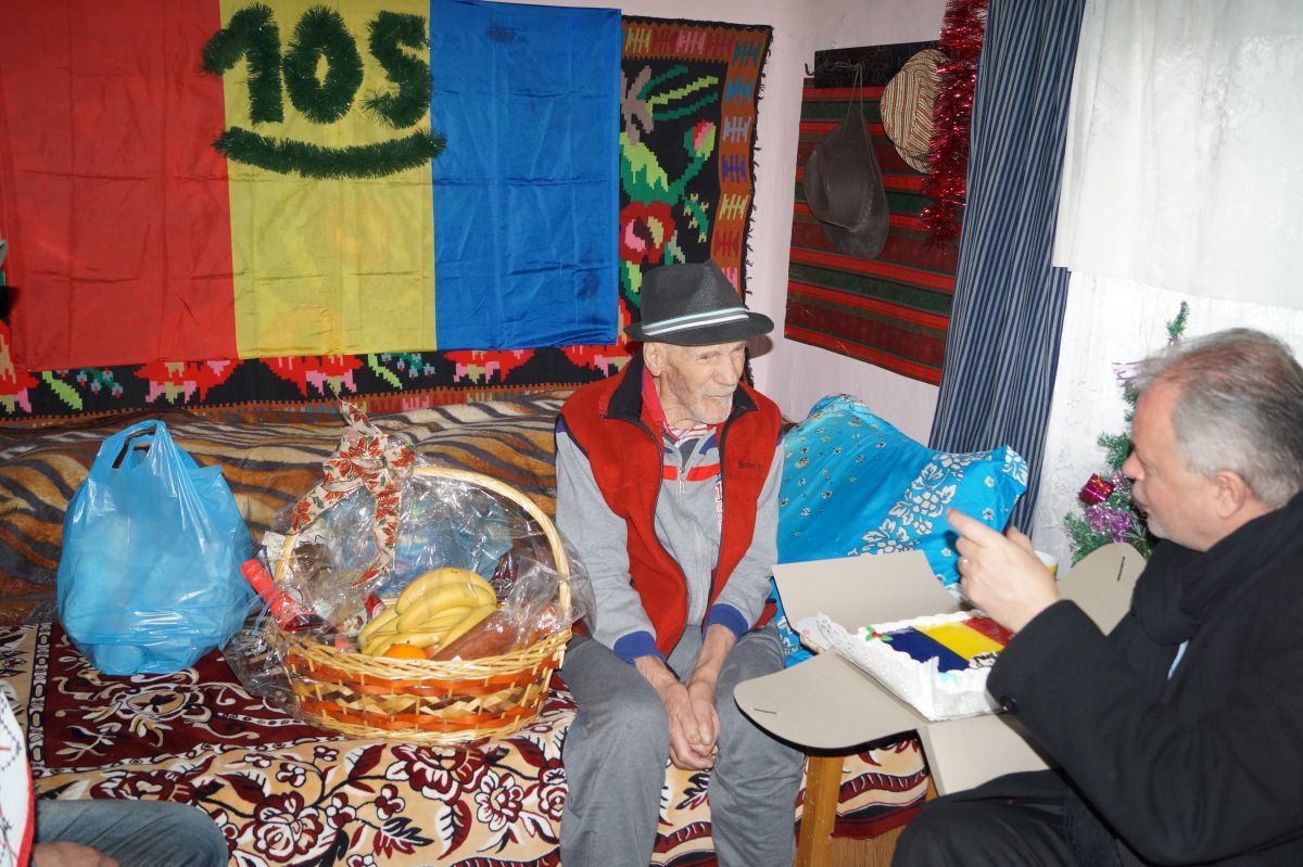 O întreagă istorie poate fi depănată pe filele vieții de veteranul de război Gheorghe Baciu. Firav la trup dar încă verde în gânduri, acesta a povestit câteva amintiri din lunga sa viață și s-a bucurat sincer pentru darurile primite.
