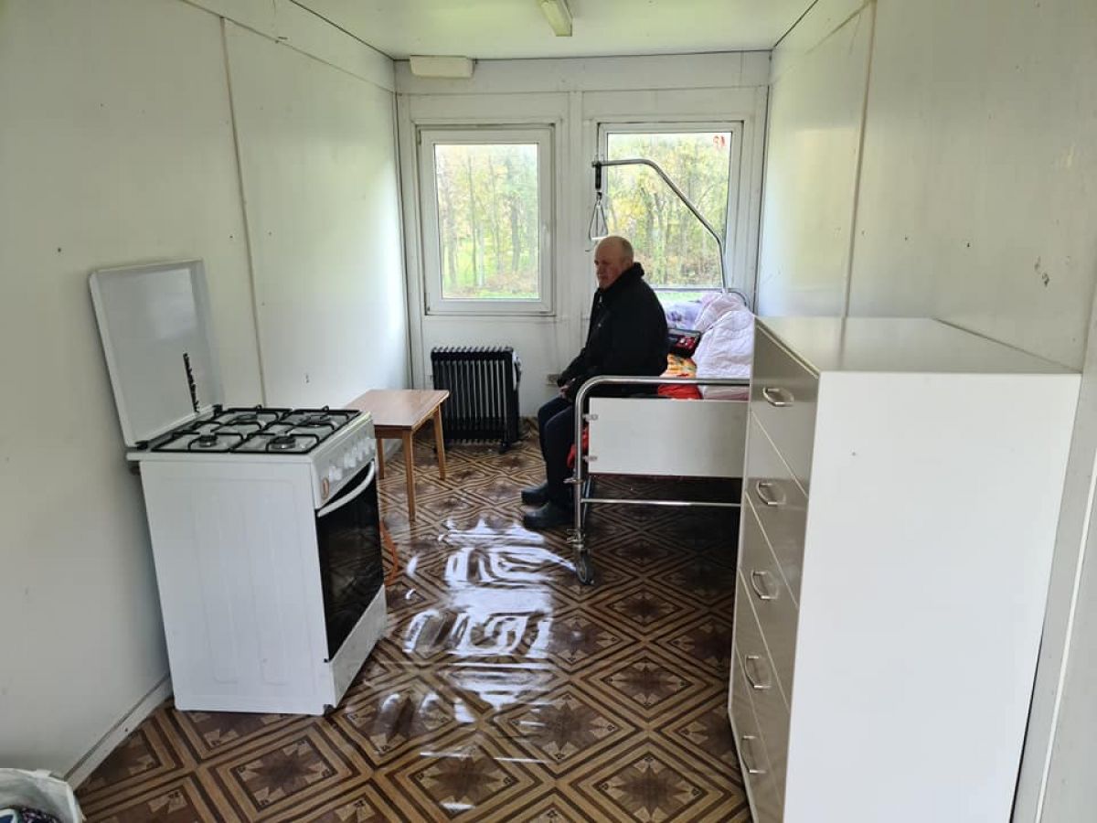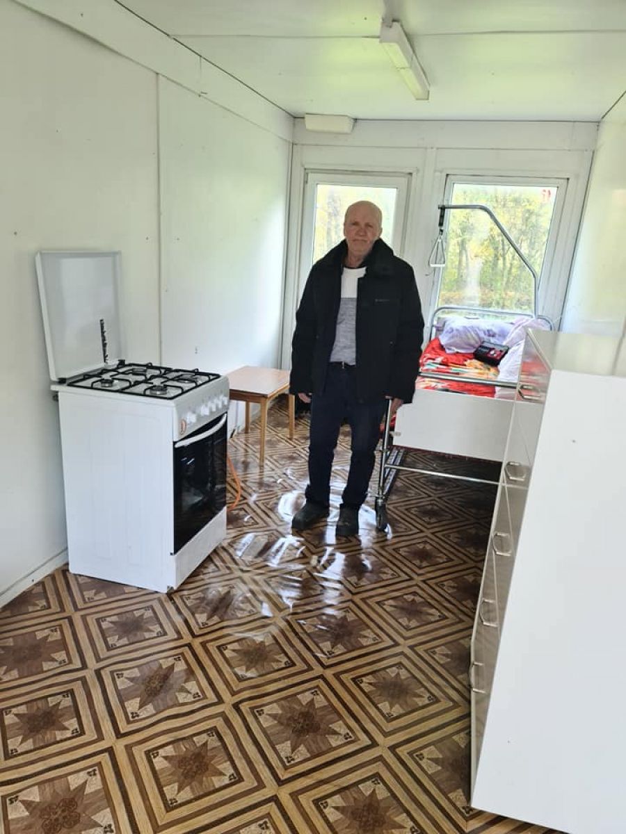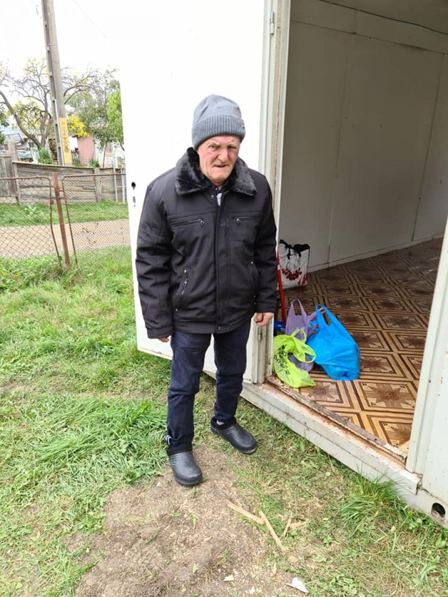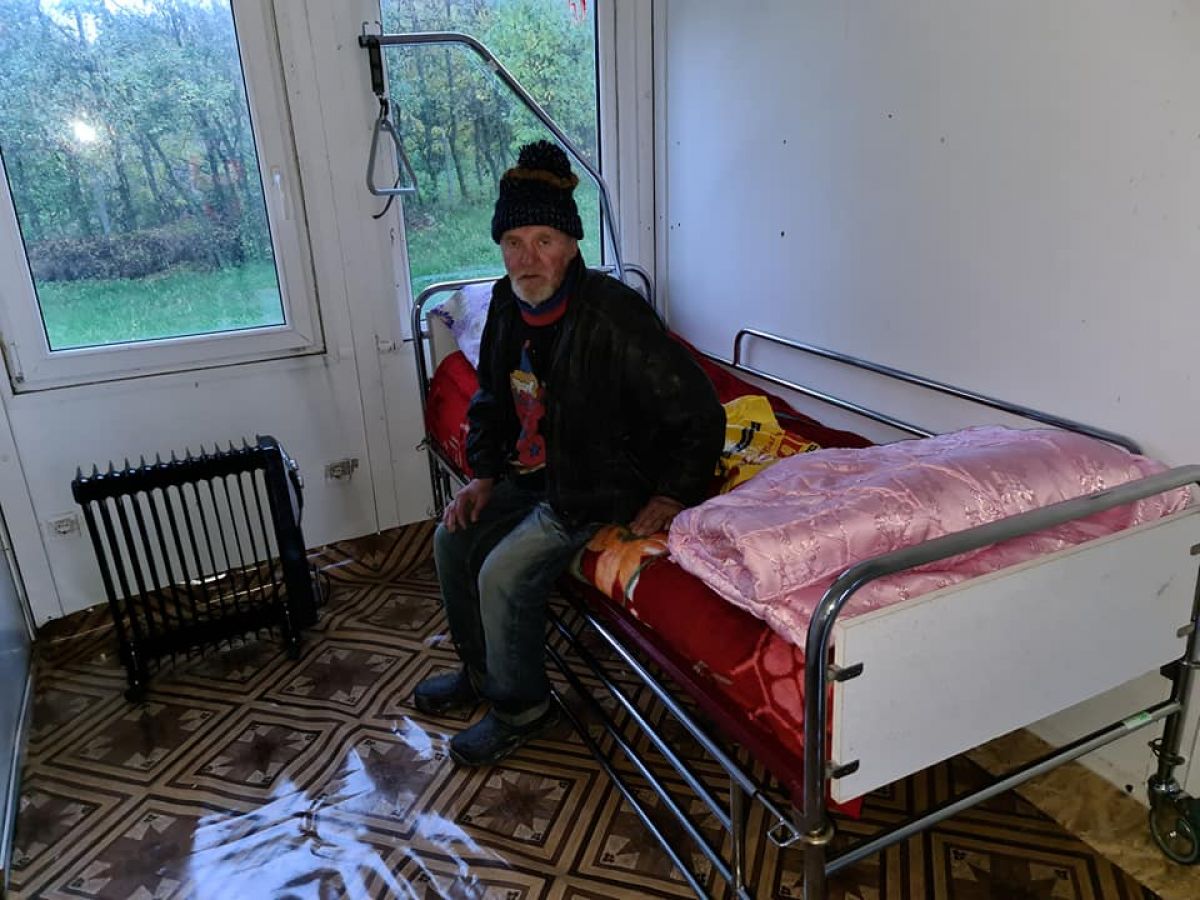 I-am cumpărat aragaz, butelie, pat, saltea, frigider, un calorifer şi cu mari eforturi am reușit sa fac tot posibilul ca containerul să fie racordat şi la reţeaua electrică. Totodată, am plătit o femeie din sat care să-i ducă zilnic mâncare caldă. Îi vom face şi pensie şi, cu ajutorul lui Dumnezeu, la primăvară o să ne apucăm să-i ridicăm o căsuţă.
