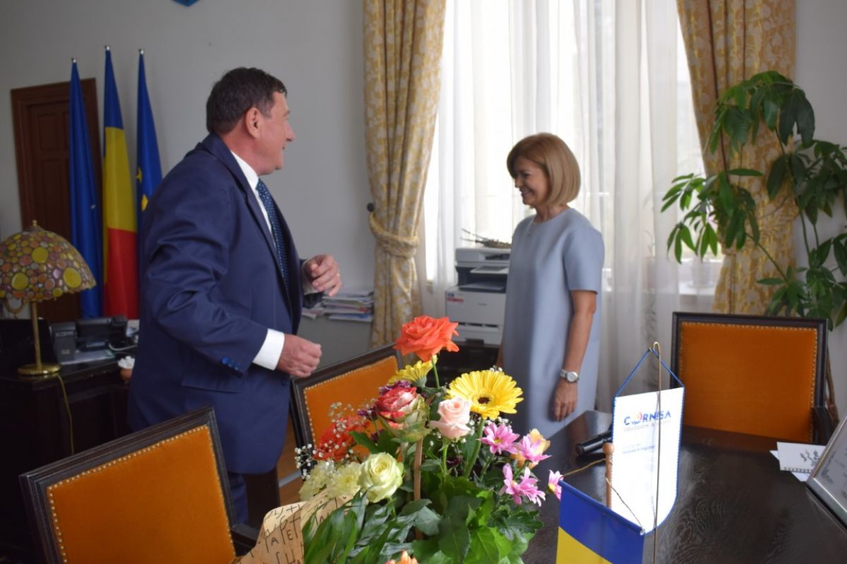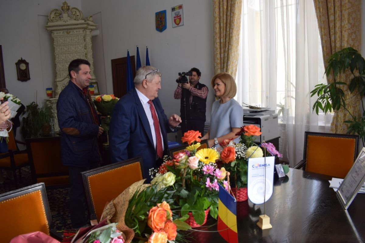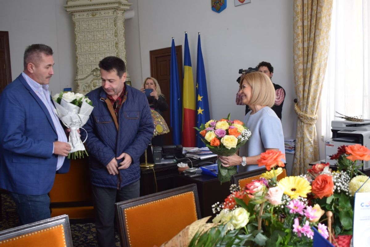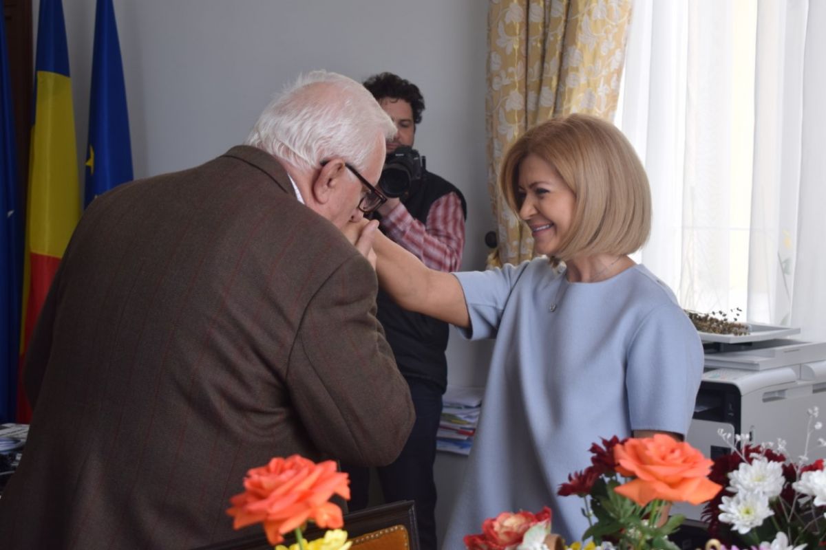 Astăzi după ceremonia prin care i-a fost conferit titlul de cetățean de onoare, medicul Doina Hrehoreț a susținut o scurtă conferință de presă în biroul primarului Cătălin Flutur, unde a primit flori din partea pacienților pe care i-a operat în trecut.