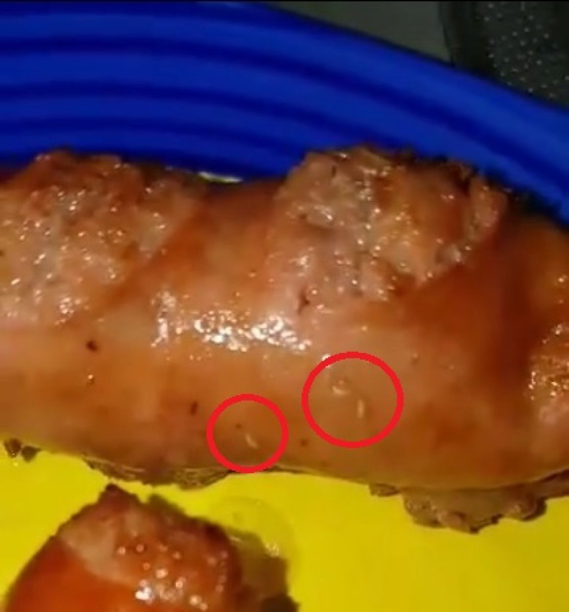 Aceasta și-a filmat cârnații, iar imaginile sunt de-a dreptul șocante, viermii putând fi văzuți cu ochii liber cum se mișcă prin respectivul preparat.