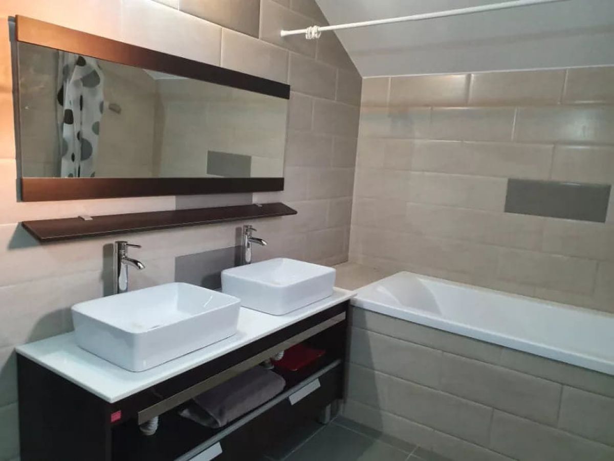 Are trei dormitoare, un salon, două bai, terasă. De asemenea, dispune de aer condiționat și de supraveghere video, centrală.