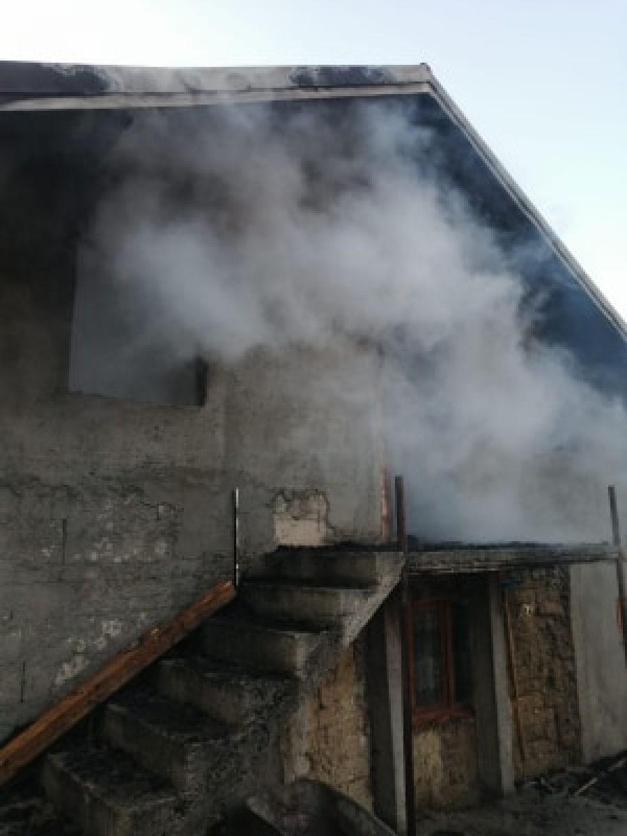 La sosirea forțelor de intervenție, ardea acoperișul casei în totalitate, precum și o parte din bunurile din interior.