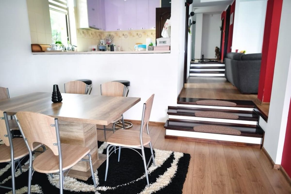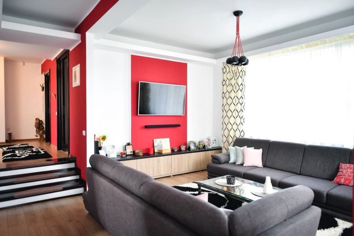 Vila de tip D+P+E dispune de toate utilitățile. Potrivit anunțului, casa scoasă la vânzare are un living deschis, bucătărie, loc pentru servit masa, două băi, trei dormitoare spațioase, dar și un birou.