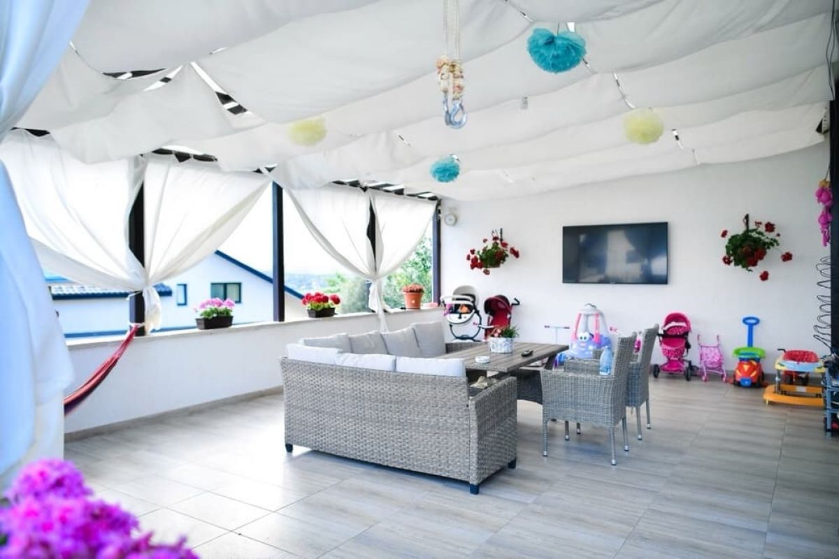 De asemenea, cel care dorește să o cumpere va avea la dispoziție garaj pentru două mașini, terase dar și curtea amenajată.