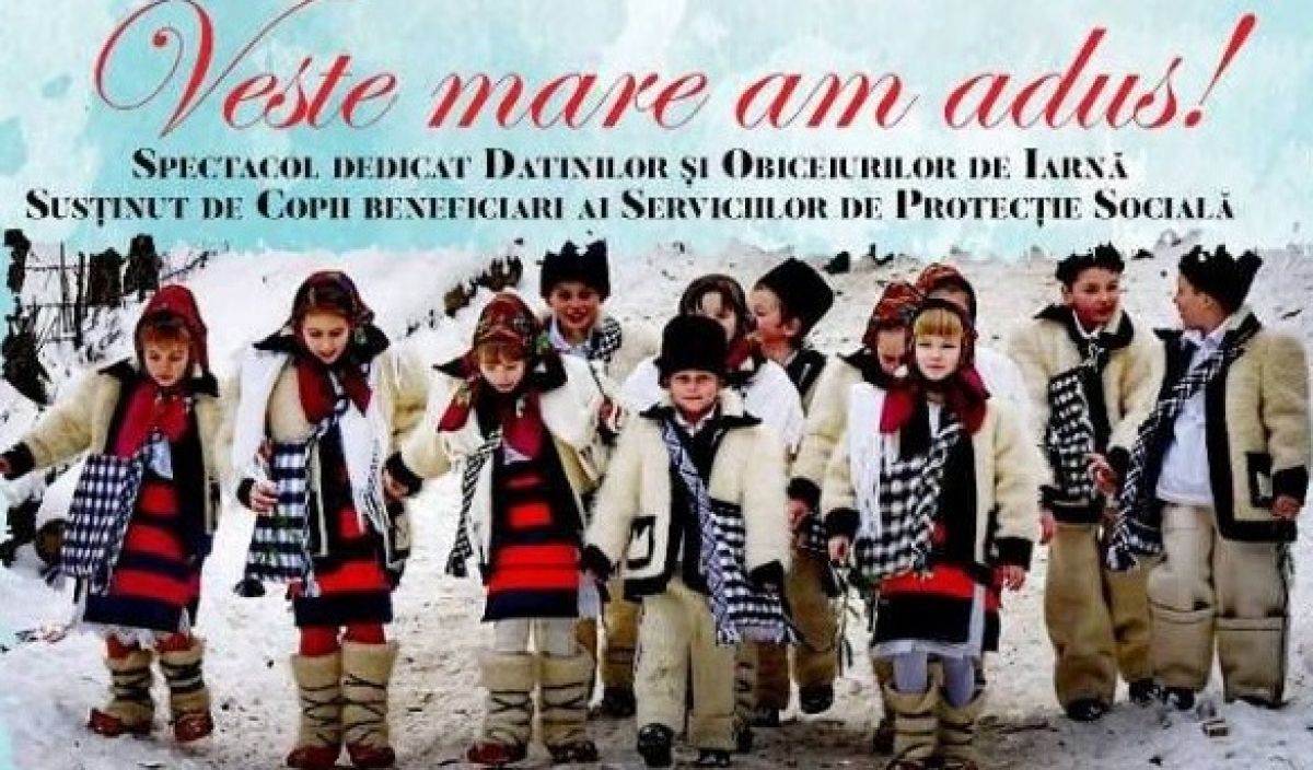Direcţia Generală de Asistenţă Socială şi Protecţia Copilului Botoşani organizează în data de 7 decembrie 2017, începând cu ora 14,00, la sala Teatrului ,,Mihai Eminescu” Botoșani - din incinta Casei Tineretului, spectacolul „Veste mare am adus!”.
