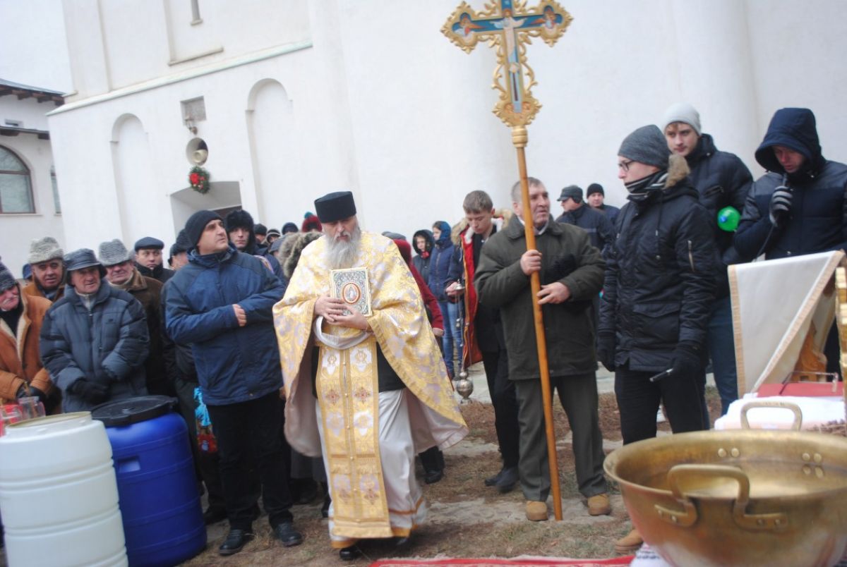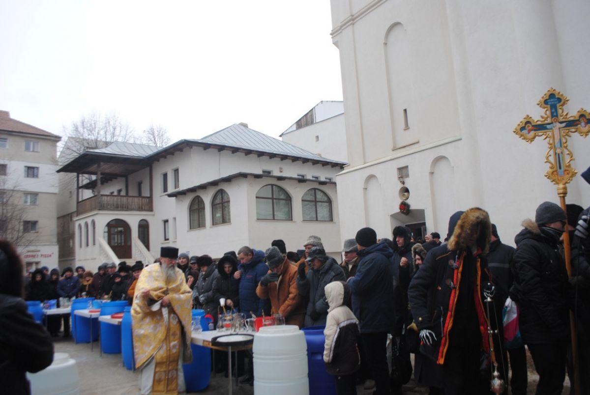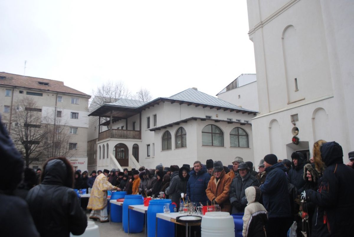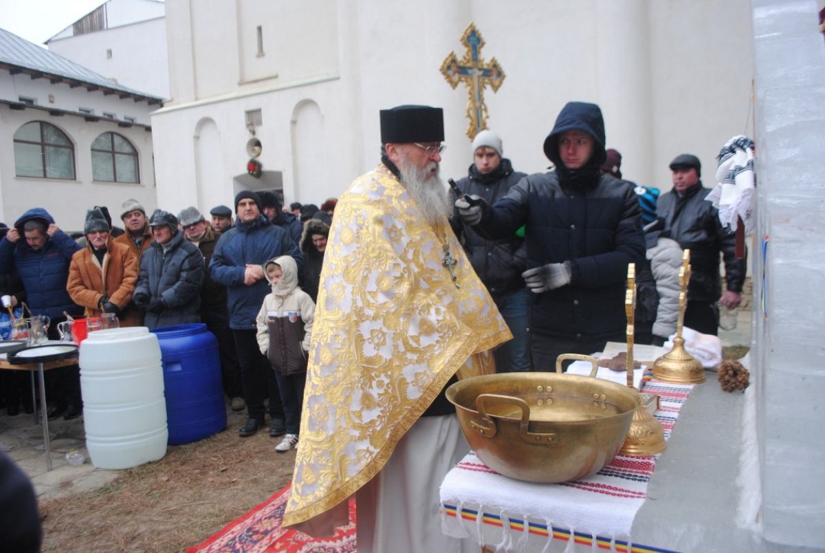 După obișnuita ceremonie divină, specifică sărbătorii de azi, s-a desfășurat slujba de sfințire a apei.