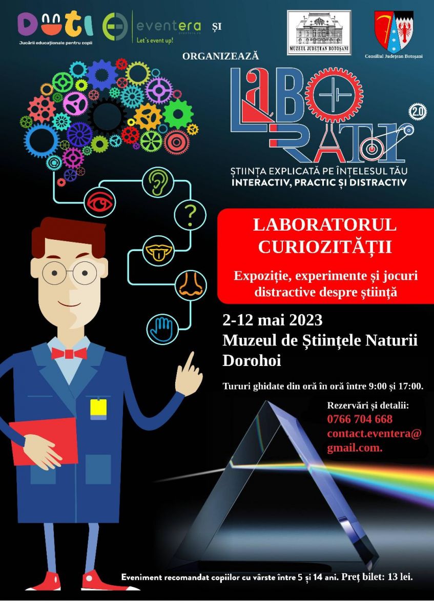 Muzeul de Științele Naturii Dorohoi și Eventera organizează, în perioada 2-12 mai 2023, „Laboratorul curiozității”.
