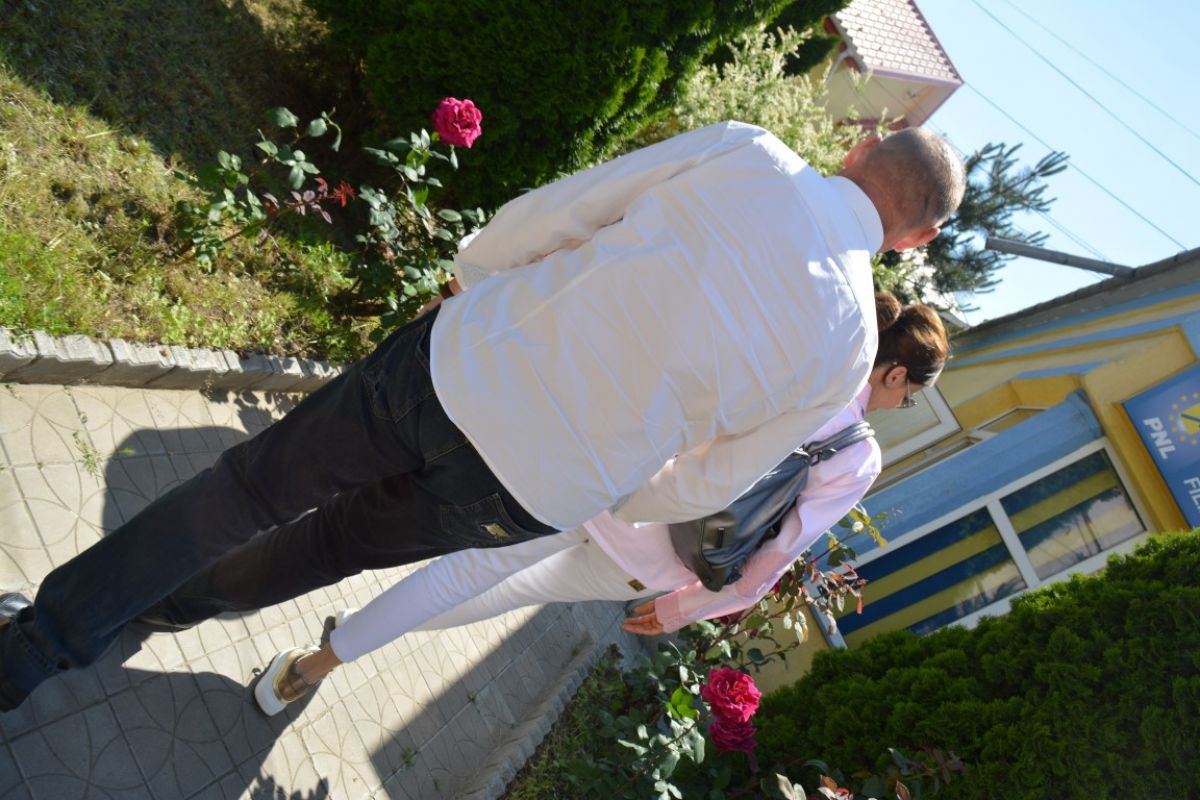 Viorel Cataramă a coborât dintr-un BMW alături de soţia sa, Adina, ambii îmbrăcaţi lejer şi au intrat de mână în sediul partidului din strada Teatrului.