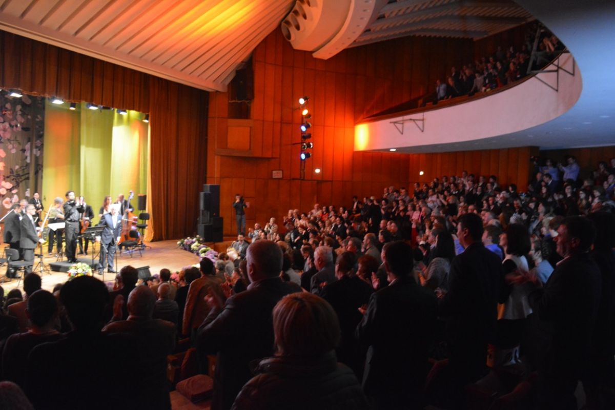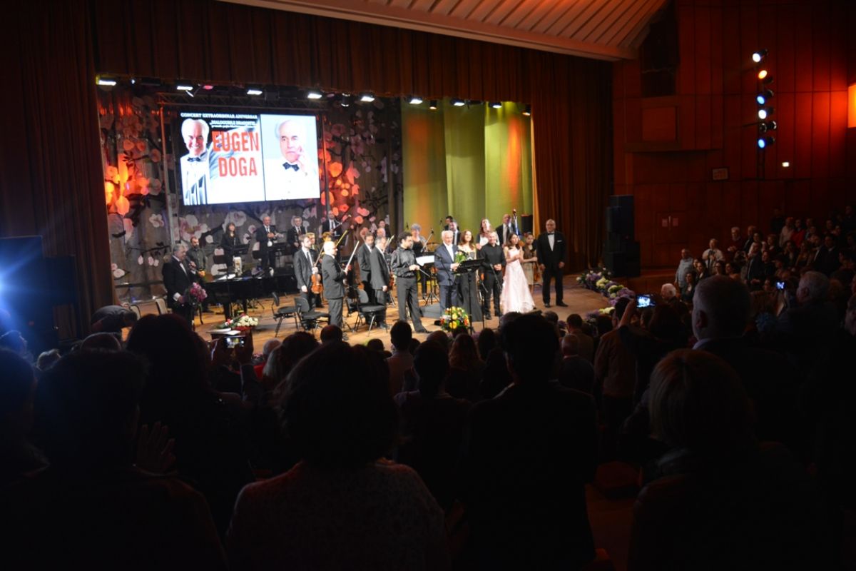 ”Mă mir cum de această mică sală a putut primit atâtea inimi mari!”, a exclamat Eugen Doga la sfârșitul reprezentației la care a primit flori și a fost aplaudat în mai multe rânduri în picioare.