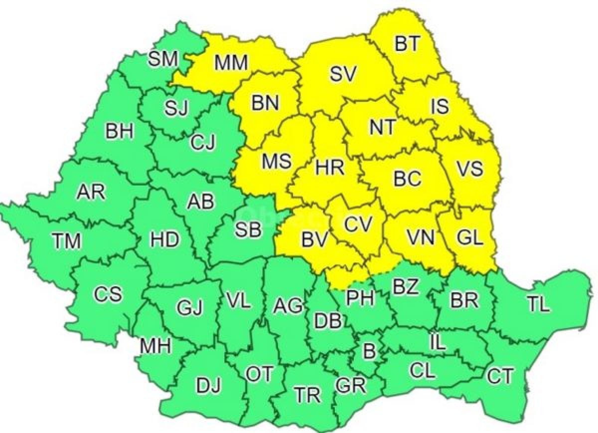 Avertizarea este în vigoare începând de marți de la ora 13:00 până miercuri la ora 10:00, în județele Botoșani, Maramureș, Bistrița-Năsăud, Harghita, Mureș, Brașov, Covasna, Prahova, Buzău, Suceava, Neamț, Iași, Bacău, Vaslui, Vrancea și Galați.