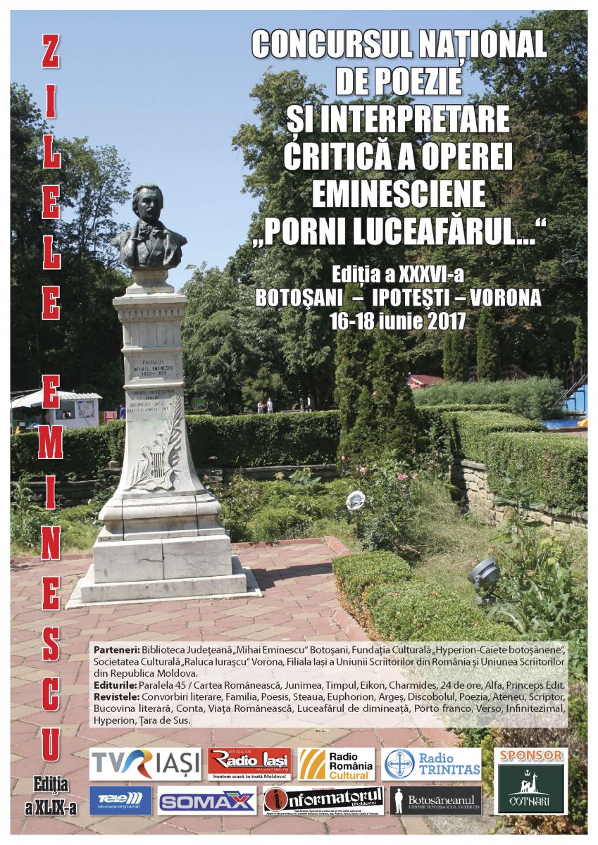 Consiliul Judeţean Botoşani, Centrul Judeţean pentru Conservarea şi Promovarea Culturii Tradiţionale Botoşani, în parteneriat cu Societatea Culturală „Raluca Iuraşcu” Vorona, organizează Concursul Naţional de Poezie şi Interpretare Critică a Operei Eminesciene „Porni Luceafărul…” ediţia a XXXVI-a, se arată într-un comunicat de presă.
