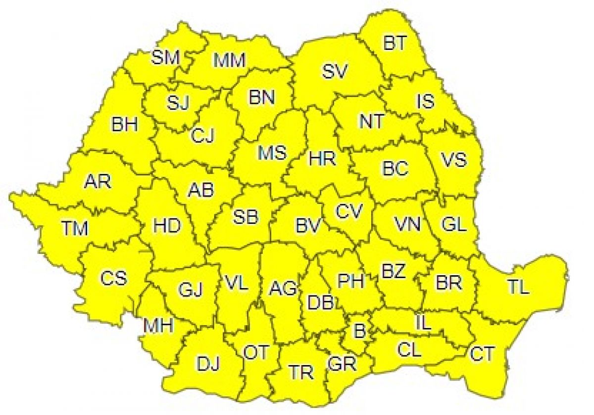 Administrația Națională de Meteorologie a emis în această dimineaţă un Cod Galben valabil pentru întreaga ţară.