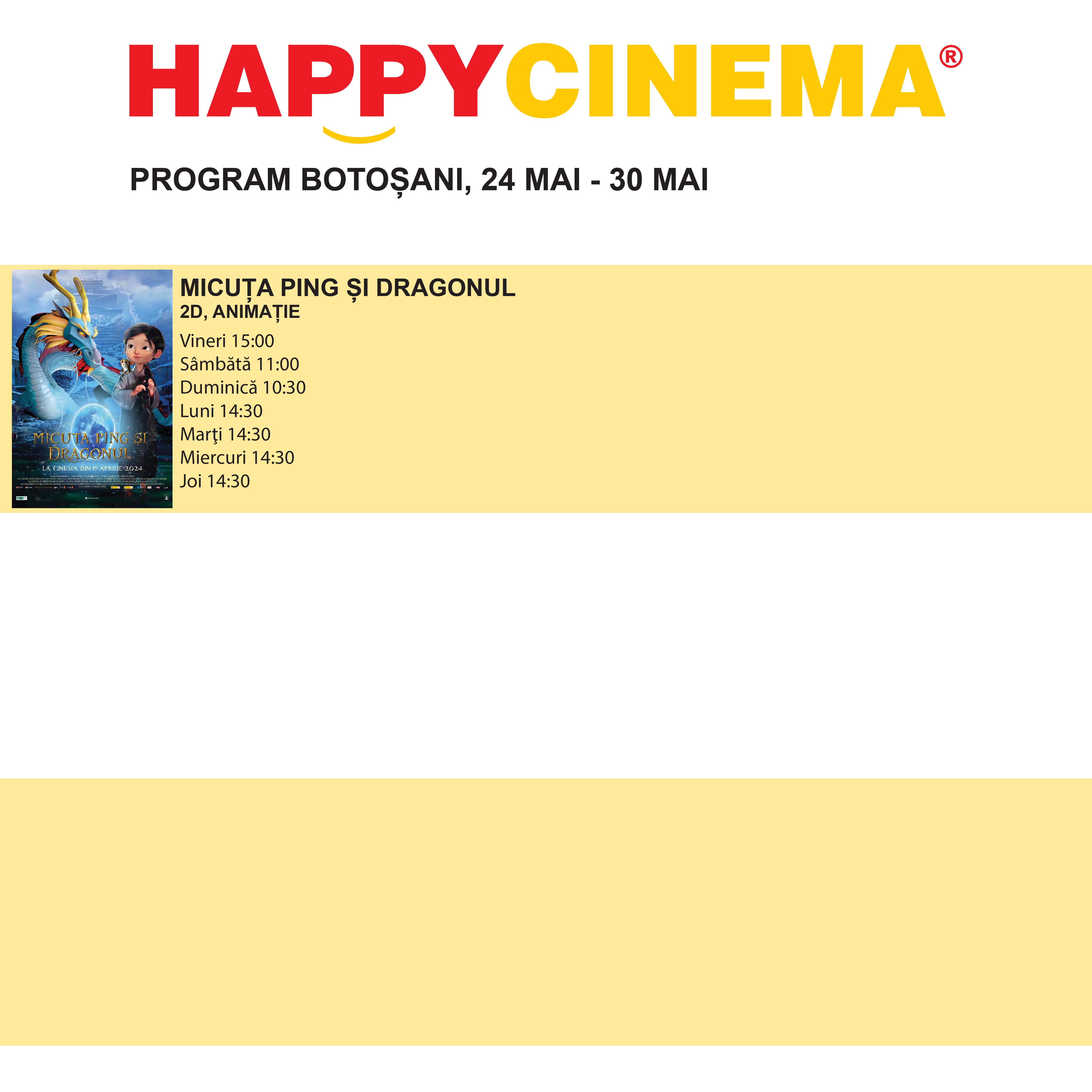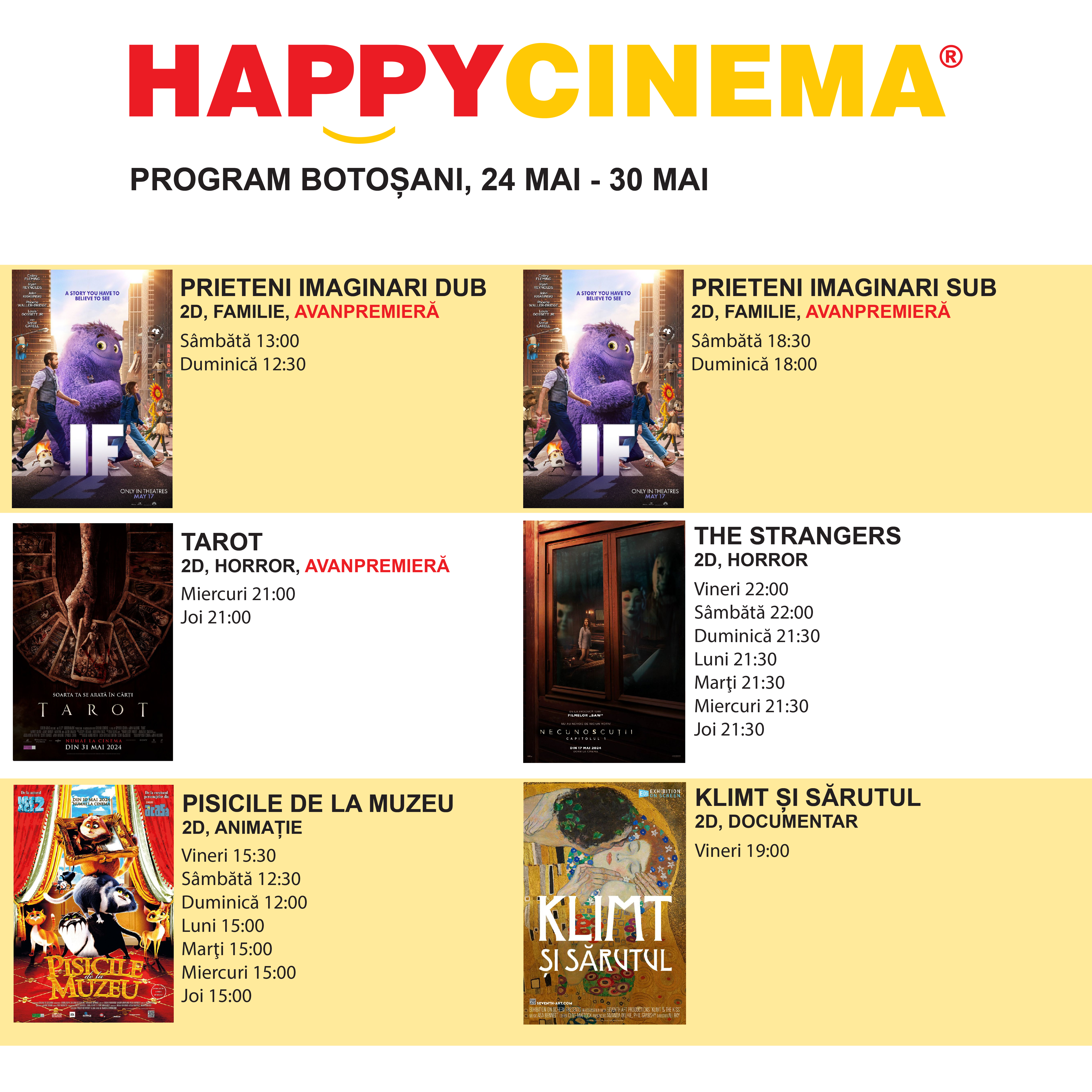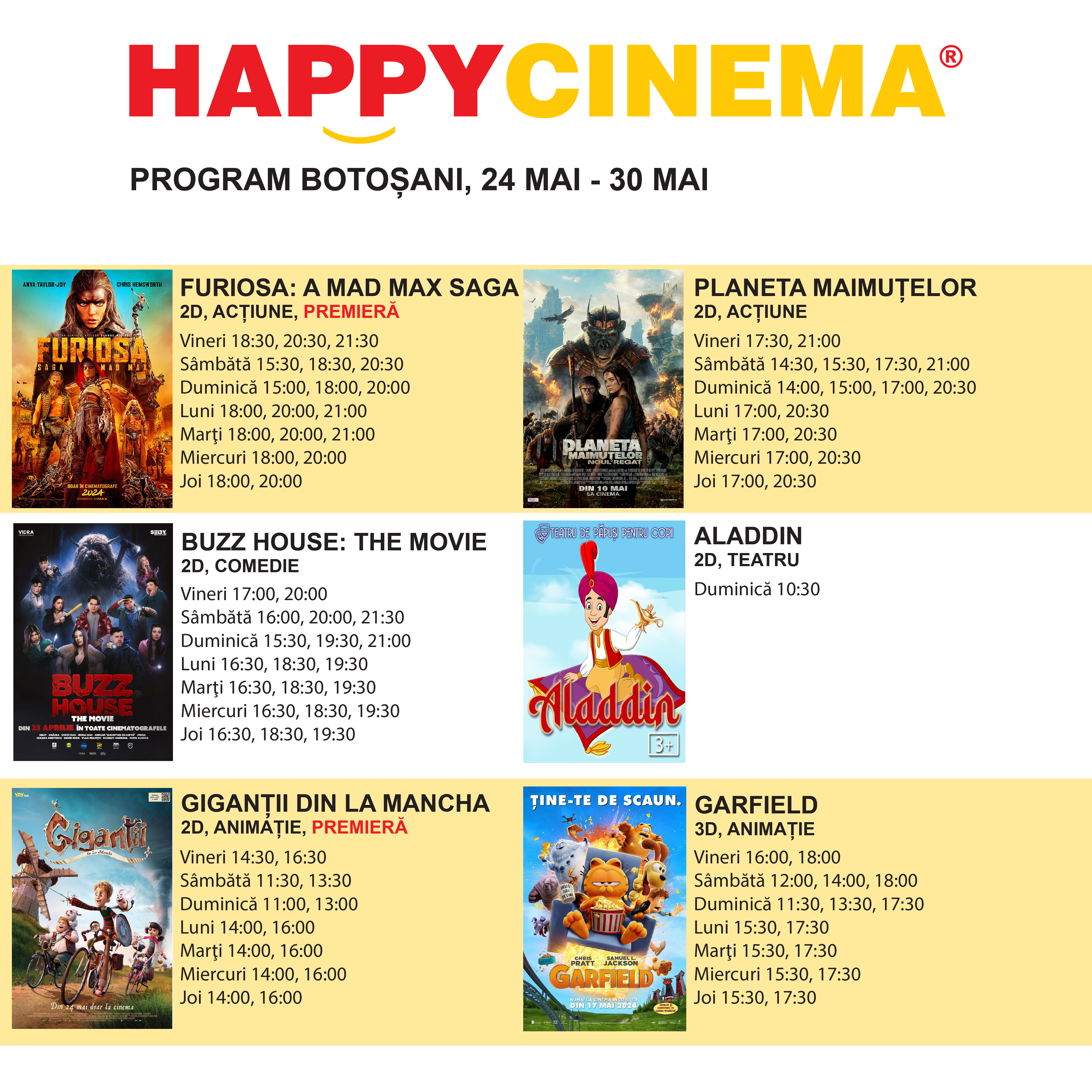 Happy Cinema Botoșani a transmis programul pentru perioada 24 mai – 30 mai 2024.