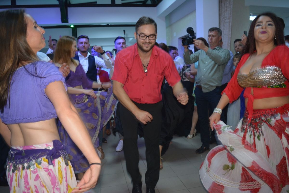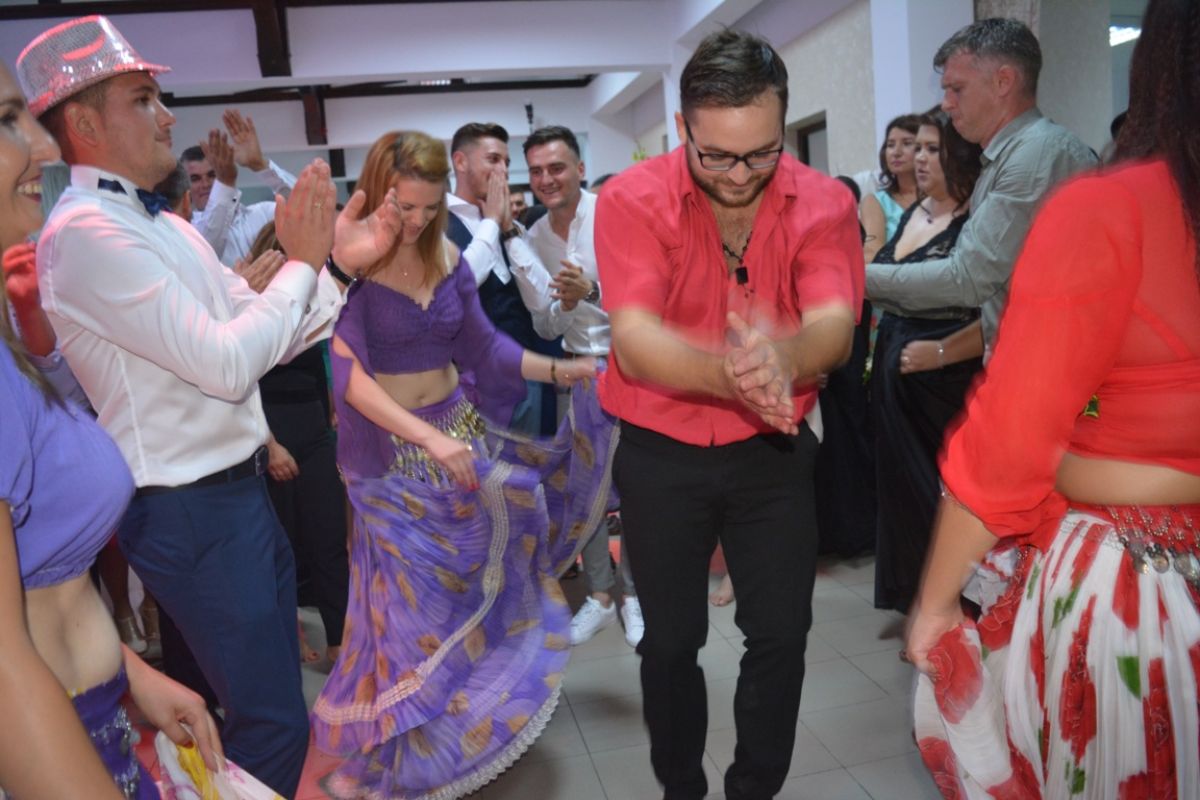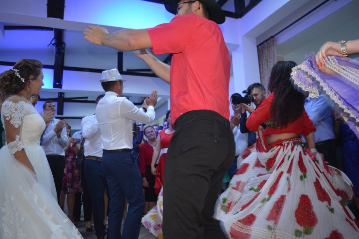 La început în dansul specific minoritarilor au fost prinși mirii, pentru ca apoi să se îngrămădească toți nuntașii.