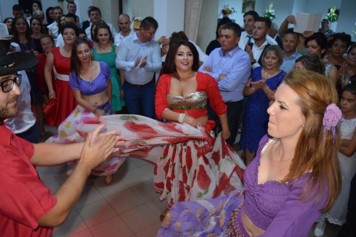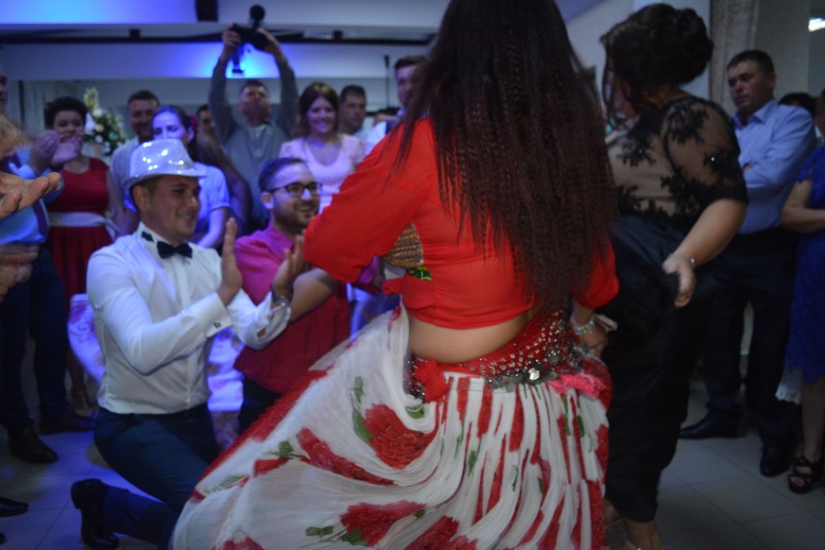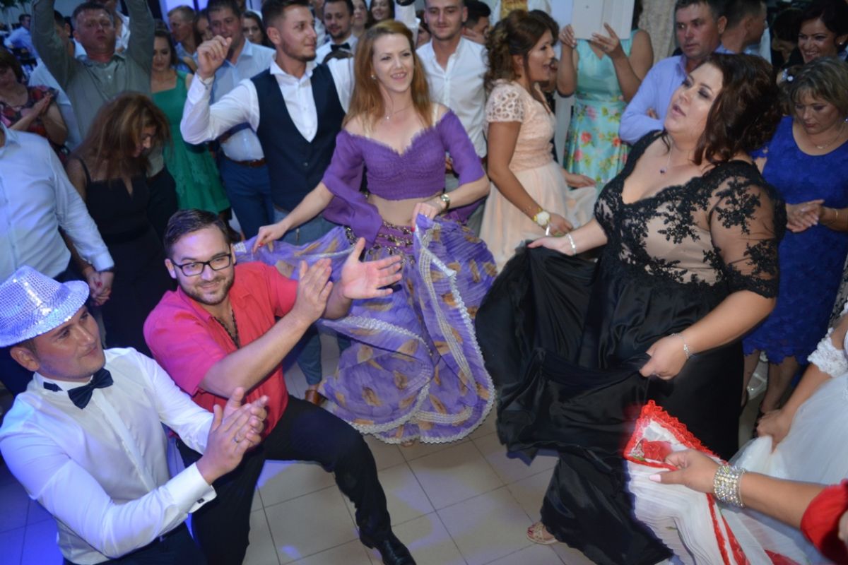 Și nu orice fel de formație, ci una de dansuri țigănești, care a intrat în restaurant exact când însurățelul a început să cânte pe versurile de la telefon.