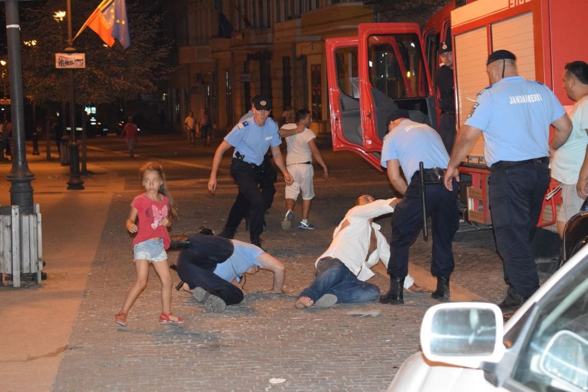 Zaiafetul din Centrul Vechi s-a terminat cu scandal, romii s-au bătut între ei, jandarmii au făcut ce-au putut – VIDEO & FOTO