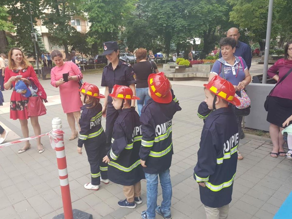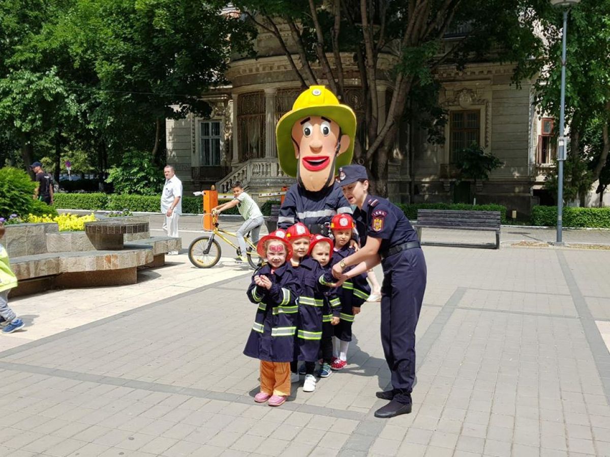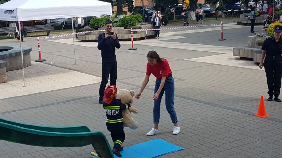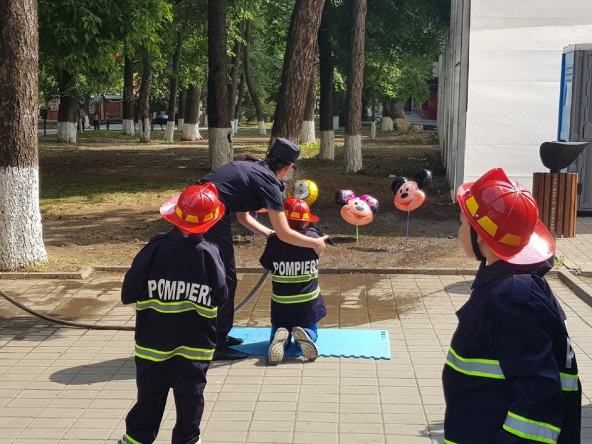 Echipați cu costume de intervenție, micii pompieri au deschis o uşă, au trecut print -un tunel, au salvat ursuleţul sau cățelul de pe tobogan şi i-au predat voluntarilor de la Crucea Roșie, au alergat printre jaloane şi au stins un incendiu imaginar. Au fost răsplătiți cu diplome, dulciuri și multe aplauze. Au fost multe zâmbete, îmbrățișari, dar şi lacrimi din partea celor mai "înfocați " salvatori, care nu doreau să se mai despartă de costumele de intervenție, de Sam Pompierul, de Daisy sau de Aky.
