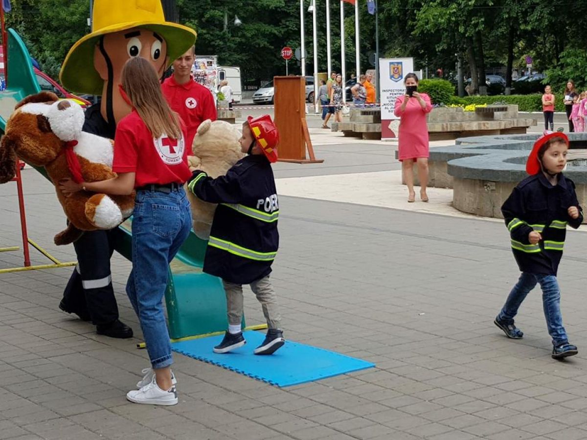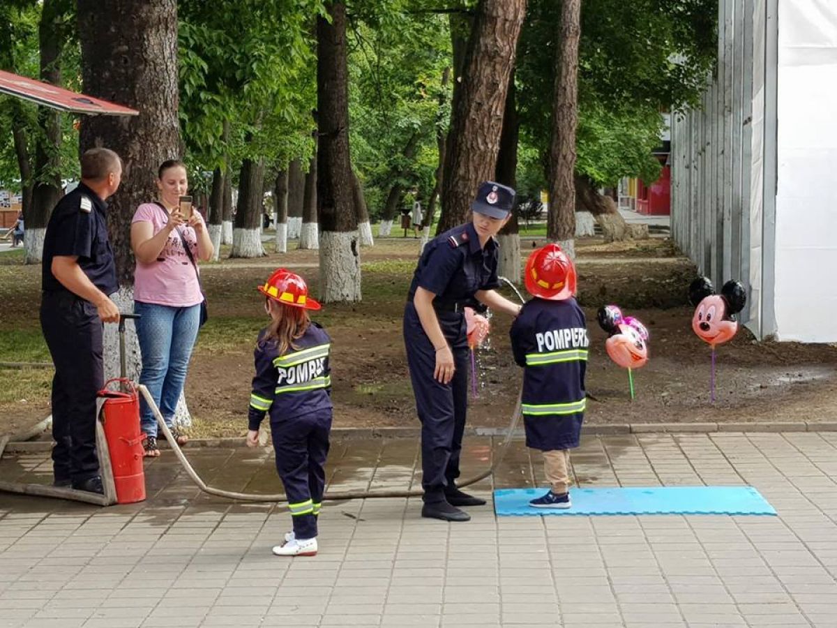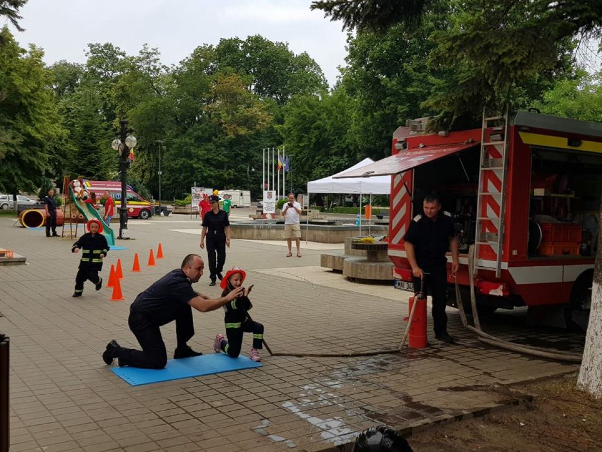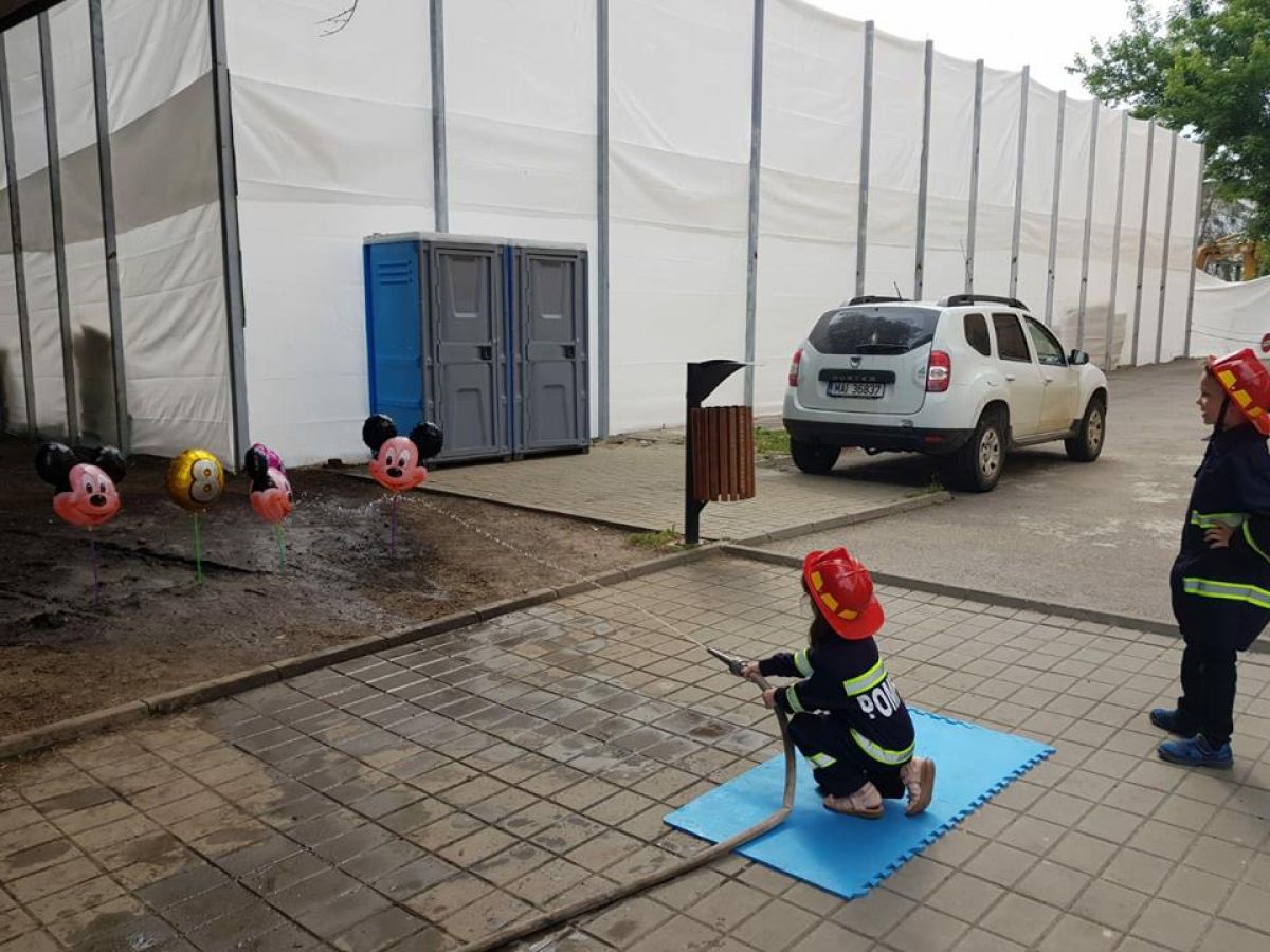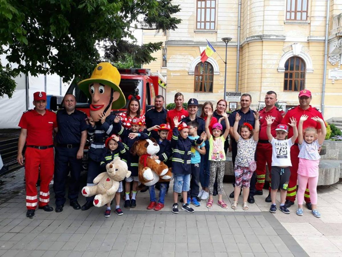 Echipați cu costume de intervenție, micii pompieri au deschis o uşă, au trecut print -un tunel, au salvat ursuleţul sau cățelul de pe tobogan şi i-au predat voluntarilor de la Crucea Roșie, au alergat printre jaloane şi au stins un incendiu imaginar. Au fost răsplătiți cu diplome, dulciuri și multe aplauze. Au fost multe zâmbete, îmbrățișari, dar şi lacrimi din partea celor mai "înfocați " salvatori, care nu doreau să se mai despartă de costumele de intervenție, de Sam Pompierul, de Daisy sau de Aky.