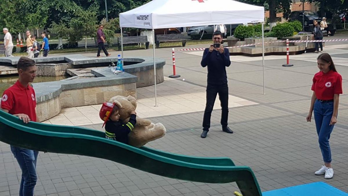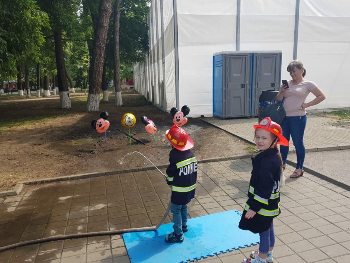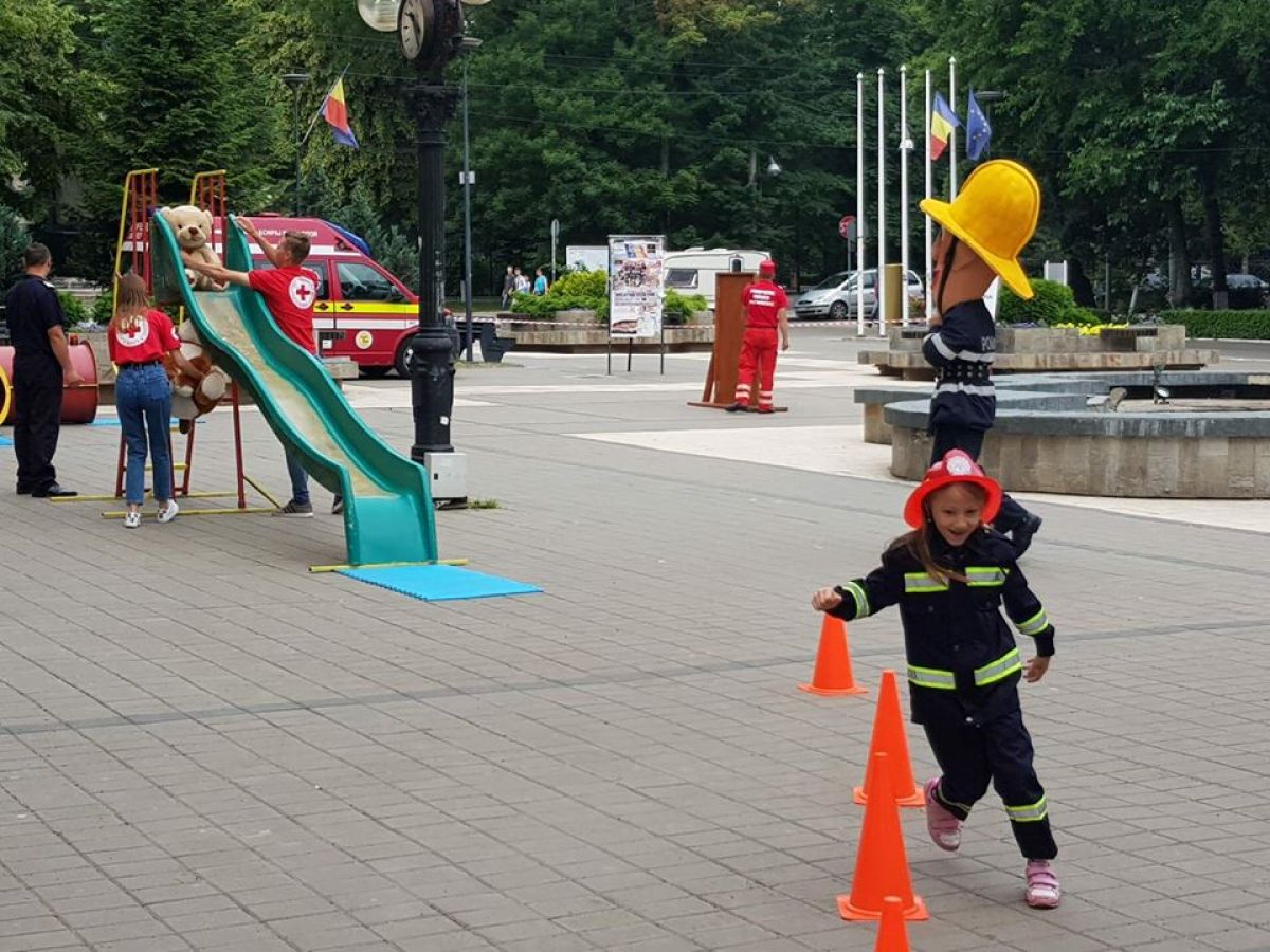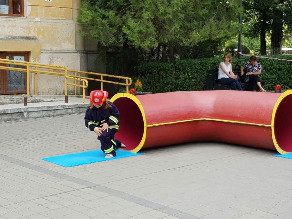 Echipați cu costume de intervenție, micii pompieri au deschis o uşă, au trecut print -un tunel, au salvat ursuleţul sau cățelul de pe tobogan şi i-au predat voluntarilor de la Crucea Roșie, au alergat printre jaloane şi au stins un incendiu imaginar. Au fost răsplătiți cu diplome, dulciuri și multe aplauze. Au fost multe zâmbete, îmbrățișari, dar şi lacrimi din partea celor mai "înfocați " salvatori, care nu doreau să se mai despartă de costumele de intervenție, de Sam Pompierul, de Daisy sau de Aky.