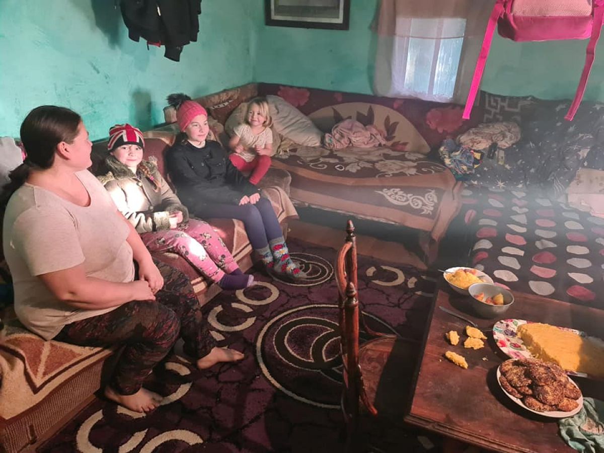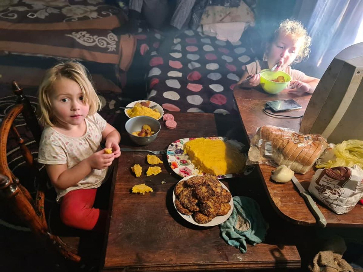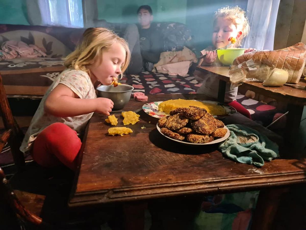 ”Le-am găsit la masă mâncând mămăligă cu cartofi prăjiţi. Mâncau cu o poftă de credeam că au în farfurie cea mai bună mâncare pregătită la un restaurant. În cameră se află şi un televizor vechi, la care fetiţele mai văd desene animate”,