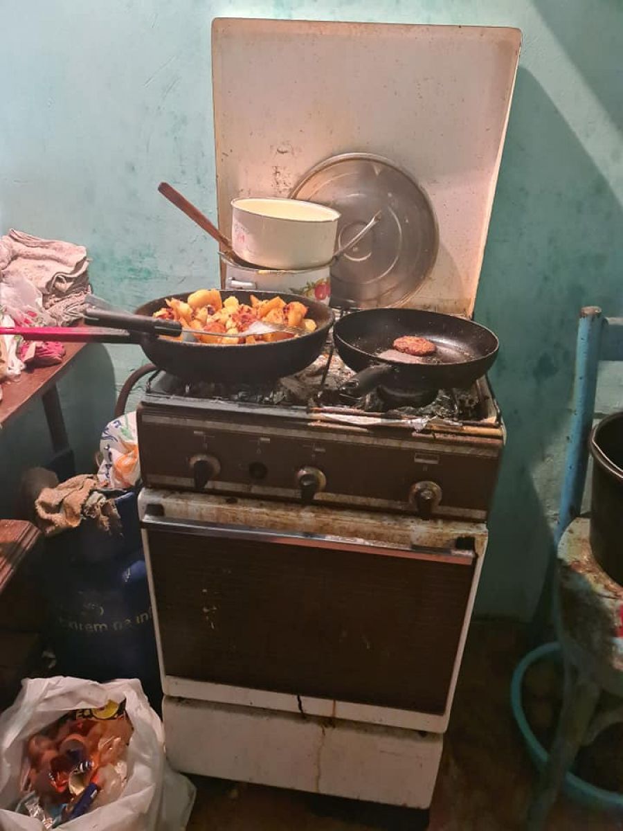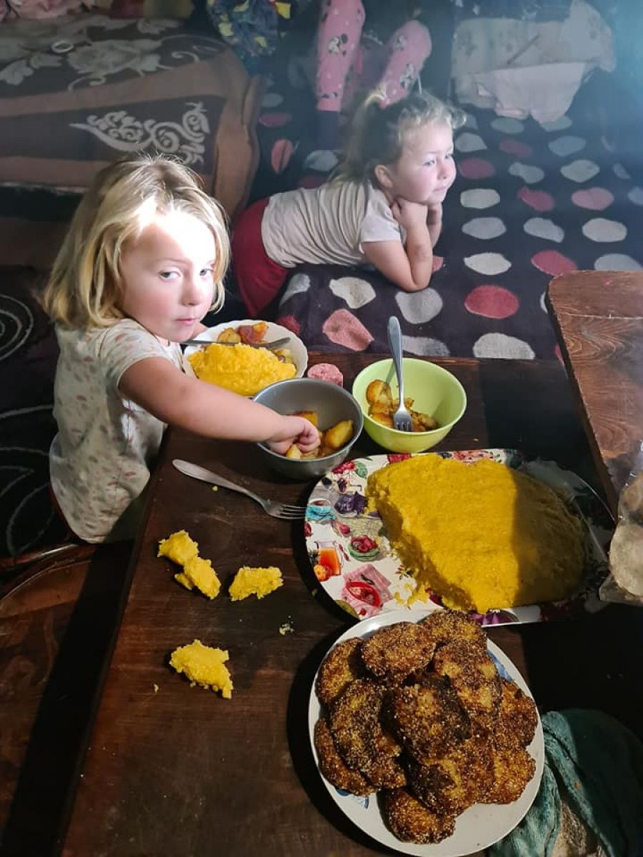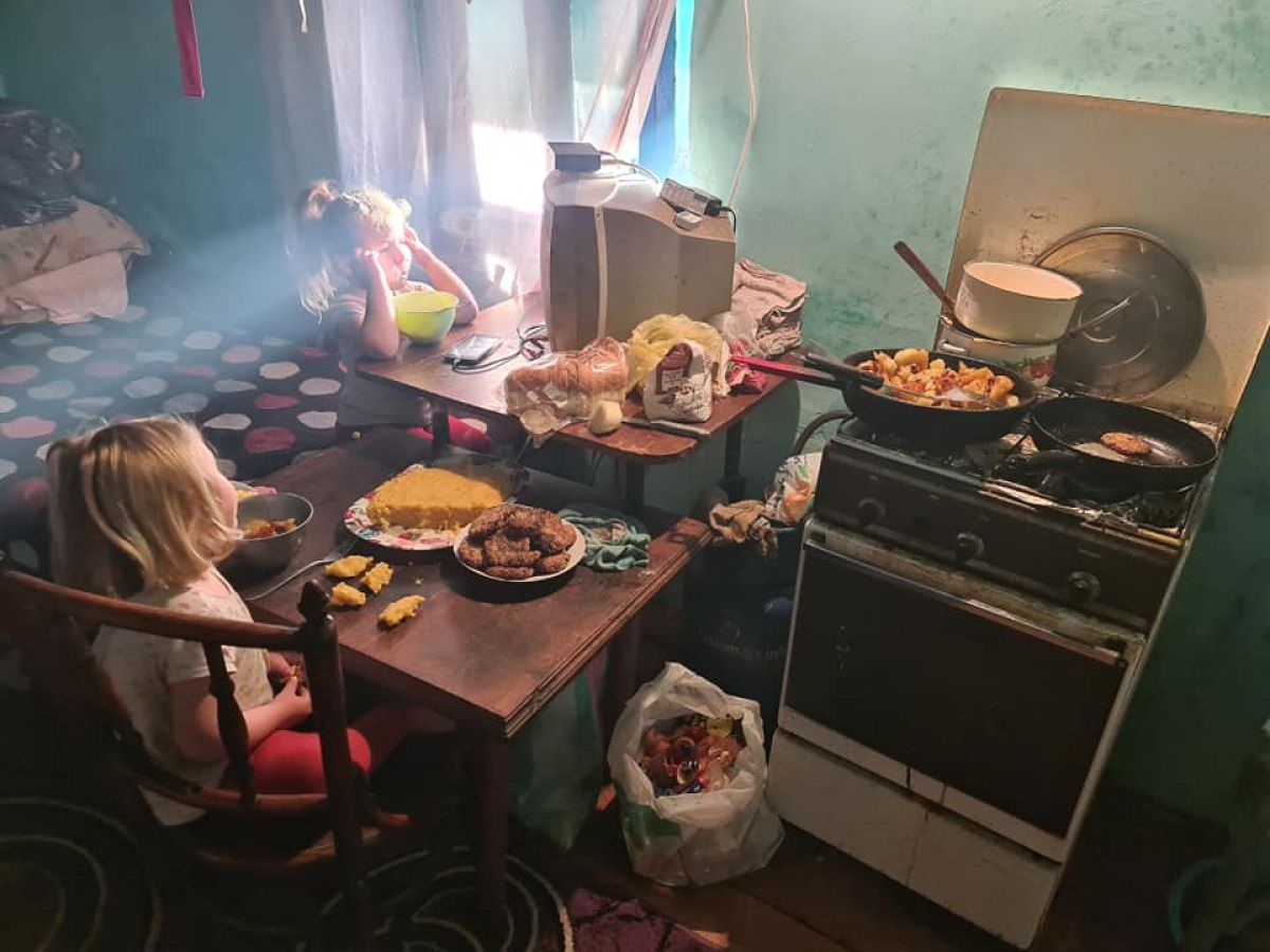 ”Le-am găsit la masă mâncând mămăligă cu cartofi prăjiţi. Mâncau cu o poftă de credeam că au în farfurie cea mai bună mâncare pregătită la un restaurant. În cameră se află şi un televizor vechi, la care fetiţele mai văd desene animate”,