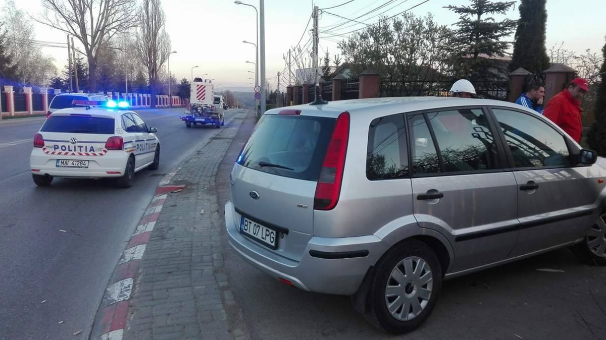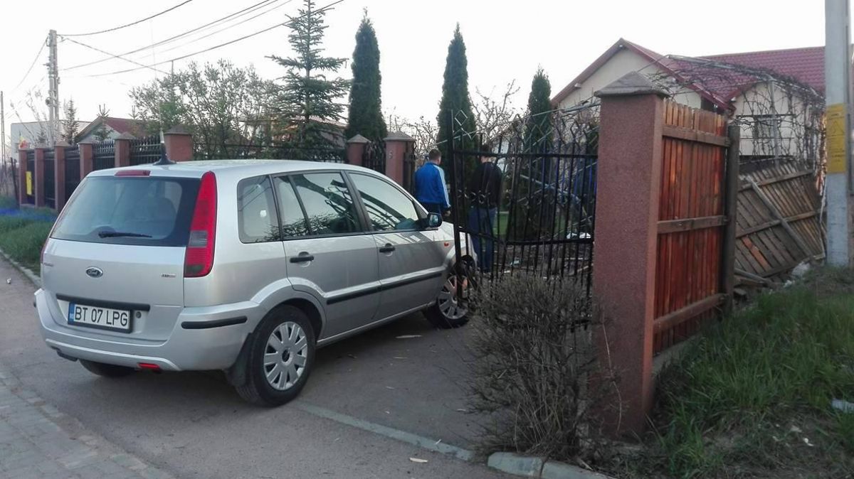 Automobilul cobora valea de la Lebăda şi conducătorul auto, băut bine, a pierdut controlul asupra volanului, a ieşit de pe şosea şi a intrat în grădina unei case. Culmea, poarta de la respectivul imobil tocmai fusese deschisă de către proprietar, care se întorcea de la serviciu.
