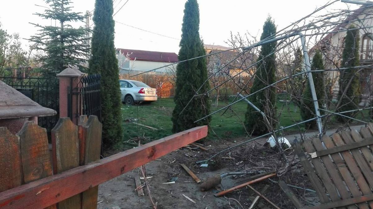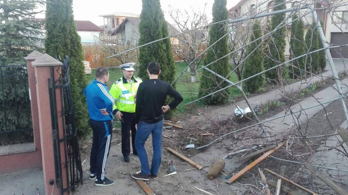 El a fost acroşat de automobilul apărut ca din senin, care a îndoit şi poarta şi care a măturat totul în cale.