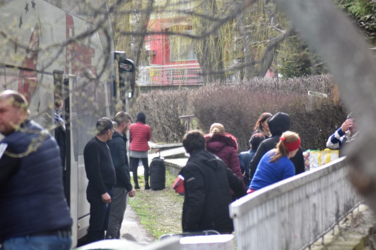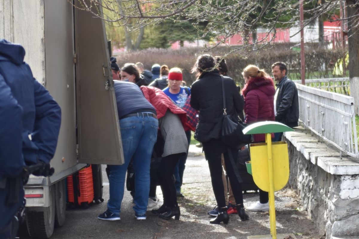 Autocarul era escortat de Poliție și duba Jandarmeriei, iar în interior se puteau ghici umbrele oamenilor. Au coborât acoperindu-se cu hainele în drumul spre camerele de cazare. Vociferau la adresa persoanelor din exterior și a aparatelor de filmat: „nu suntem bolnavi, n-avem nimic, vrem doar să mergem acasă”.