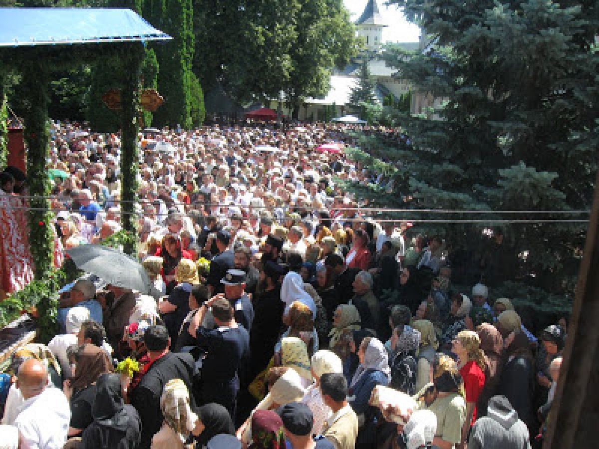 Mănăstirea „Sfântul Ioan Cel Nou” a devenit ieri cel mai important loc de pelerinaj din Moldova. Preoţi, măicuţe, mireni, oameni simpli şi oficialităţi locale s-au dus cu mic cu mare la slujba oficiată în curtea lăcaşului de cult de un sobor format din zeci de preoţi. Soborul a fost condus de IPS Pimen, arhiepiscopul Sucevei şi Rădăuţilor, IPS Teodosie, arhiepiscopul Tomisului, şi IPS Meletie, mitropolit al Cernăuţiului şi Bucovinei.