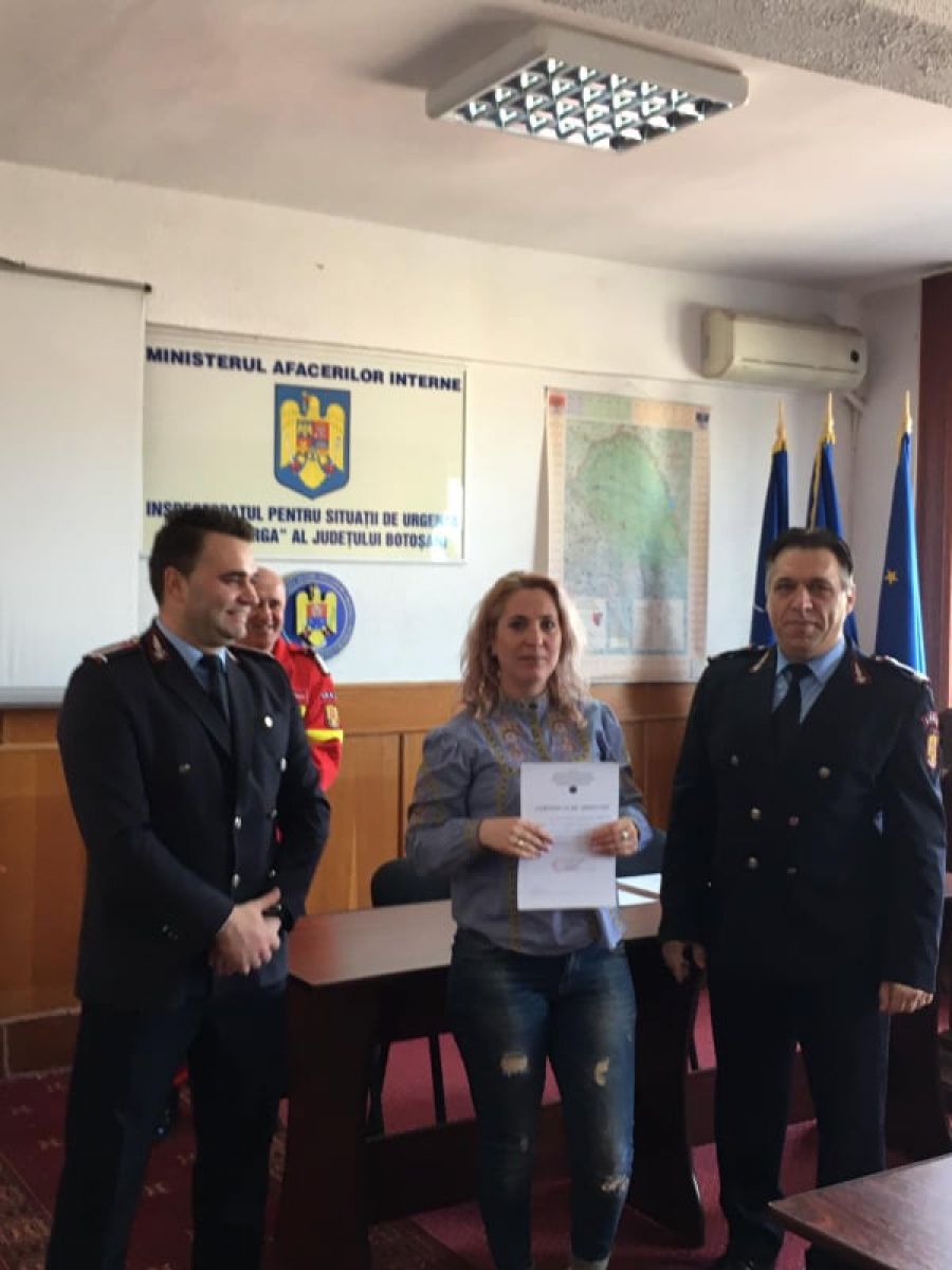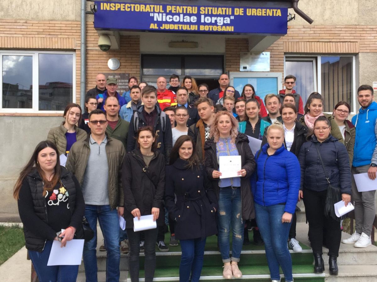 Toți cei 37 de botoșăneni înscriși în cadrul proiectului național „Salvator din pasiune” au finalizat primele două etape de pregătire, respectiv cursul introductiv privind structura, misiunile şi atribuţiile inspectoratului și cel de prim ajutor de bază.