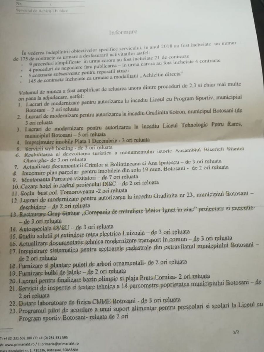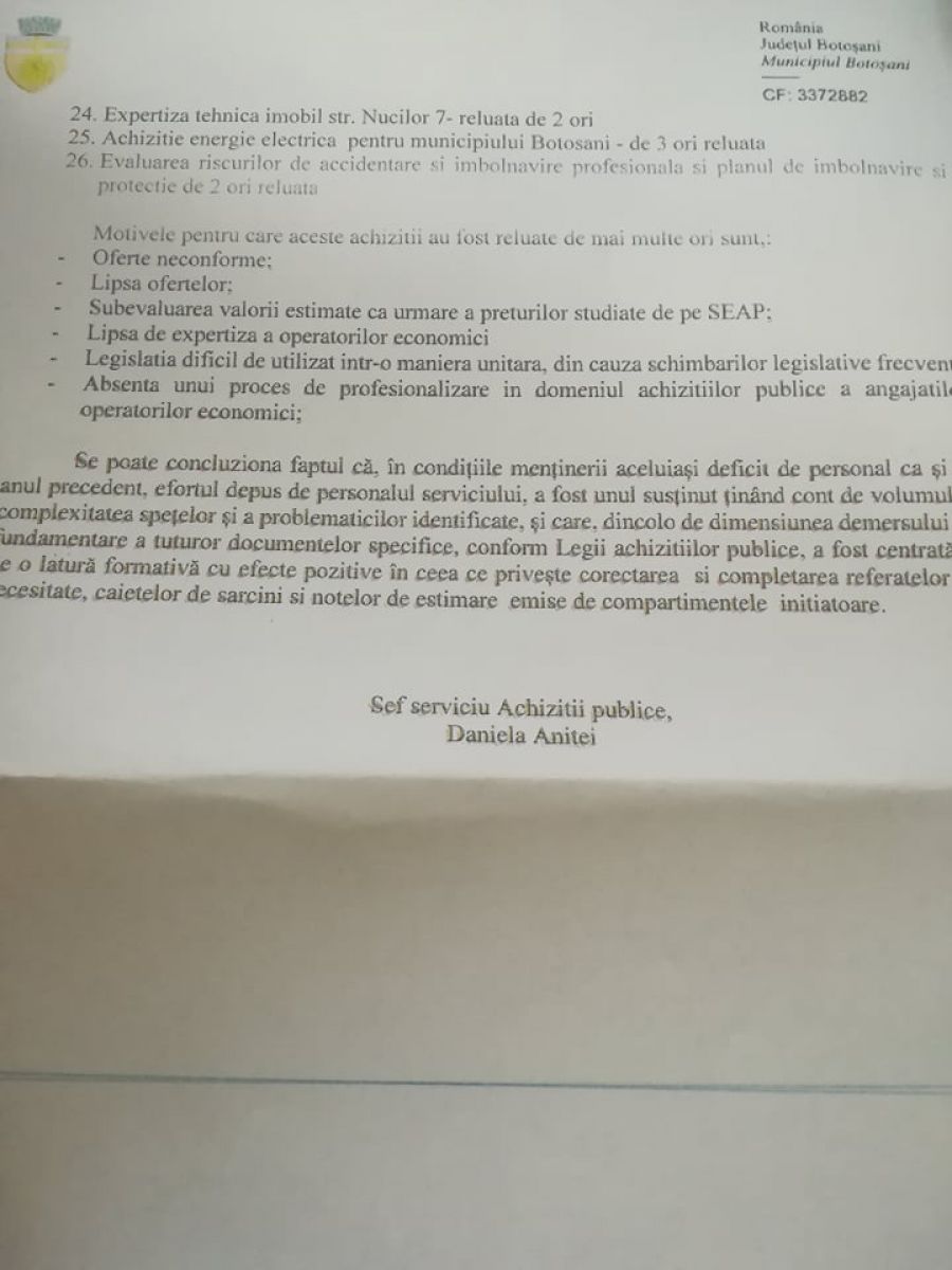 Nici mai mult, nici mai puțin de 66 de licitații derulate de Primăria Botoșani în cursul anului trecut au fost reluate.