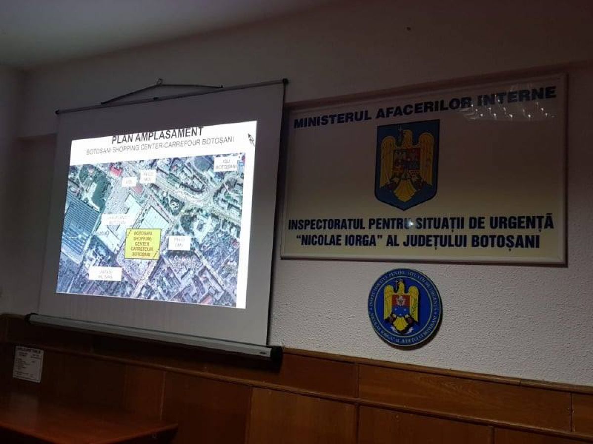 Inspectoratul pentru Situaţii de Urgenţă „Nicolae Iorga” al Judeţului Botoşani a desfășurat marţi seară, între orele 20.00 – 22.30, un exerciţiu de cooperare cu forțe și mijloace în teren pentru antrenarea structurilor de intervenție pentru limitarea şi înlăturarea efectelor unor situaţii de urgenţă de amploare produse în incinta Shopping Center – Carrefour din municipiul Botoşani, dar şi în zonele adiacente acestuia.
