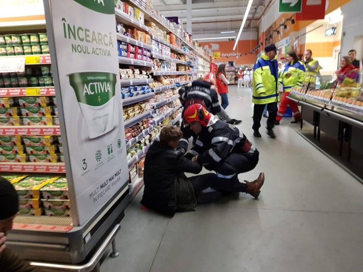 Parcarea hipermarket-ului Carrefour s-a umplut, ieri, de maşini de pompieri, de poliţie şi jandarmi, dar şi de ambulanţe .