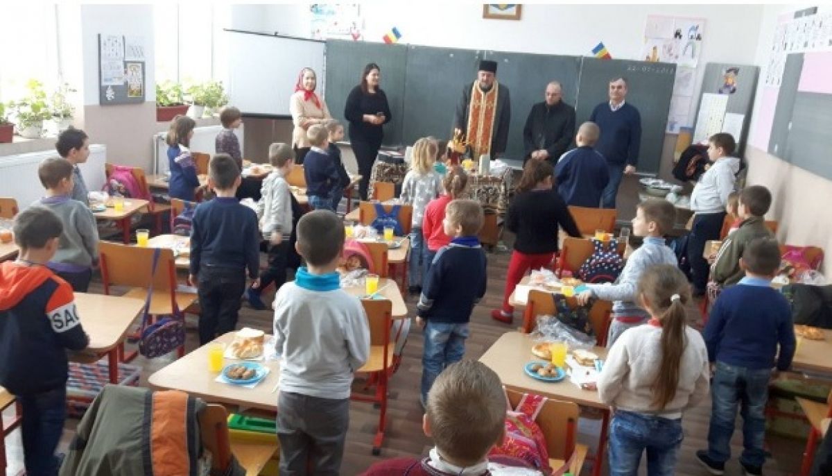 Un grup de elevi voluntari, împreună cu părintele paroh Ioan Eugen Niță, a dus prinoase la bătrâni și bolnavi.