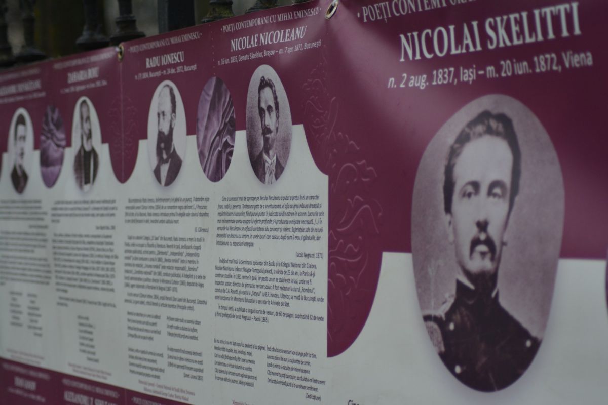 Expoziția stradală „Poeți contemporani cu Eminescu” cuprinde 68 de medalioane, începând cu Gheorghe Asachi și se încheind cu poeta Iulia Hașdeu.