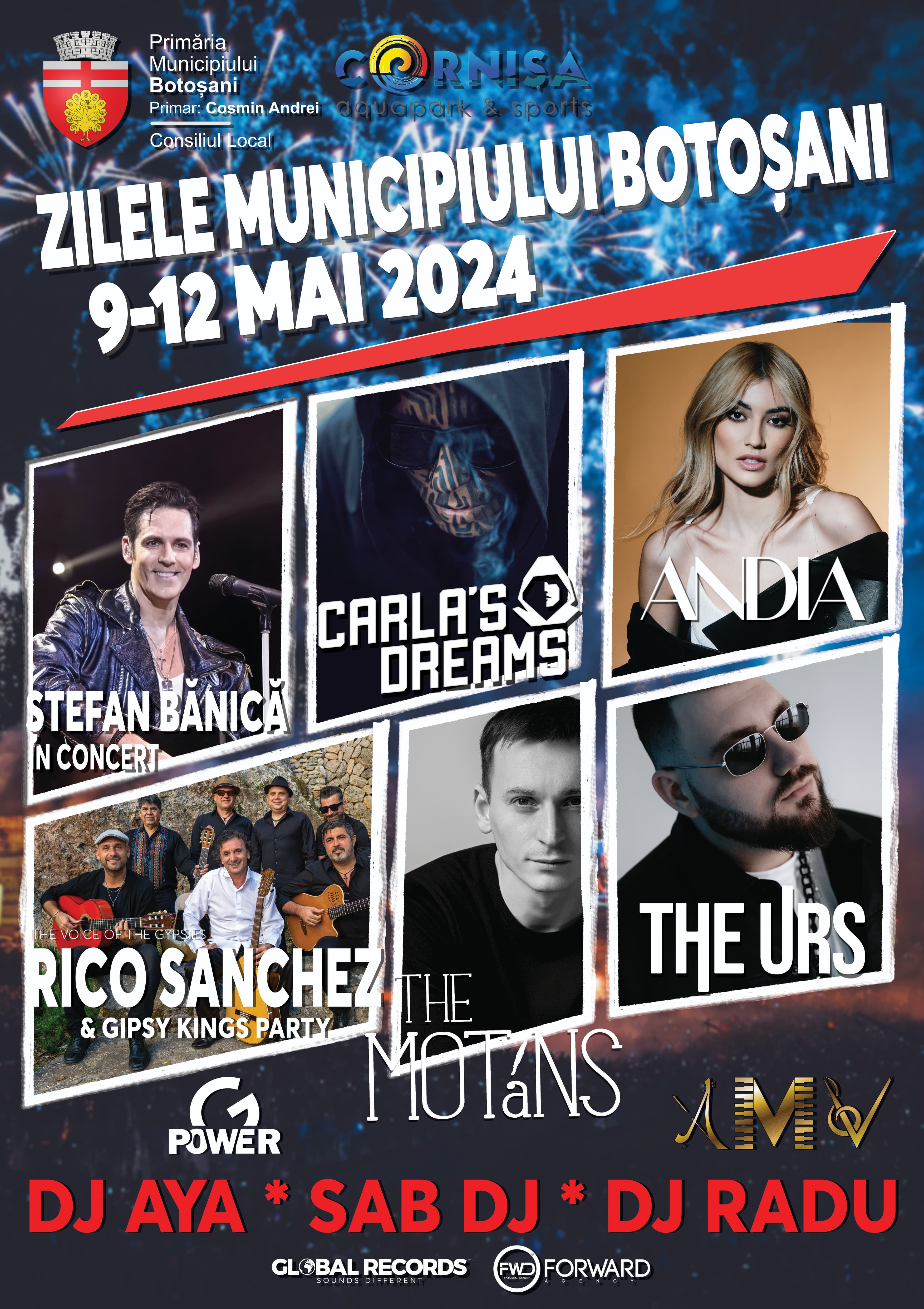 Vin la Botoșani Rico Sanchez & Gipsy Kings Party, Andia, Ștefan Bănică jr., , Carla’s Dreams, The Motans și The Urs.