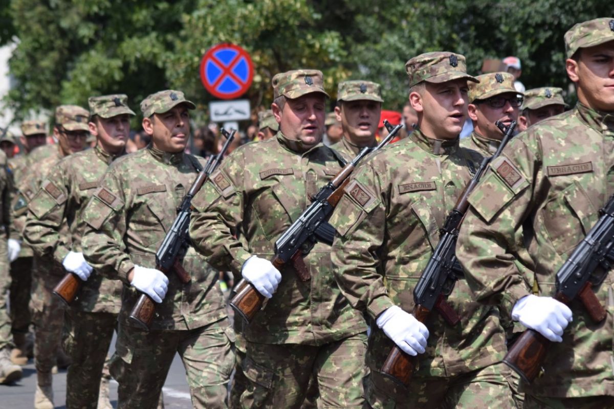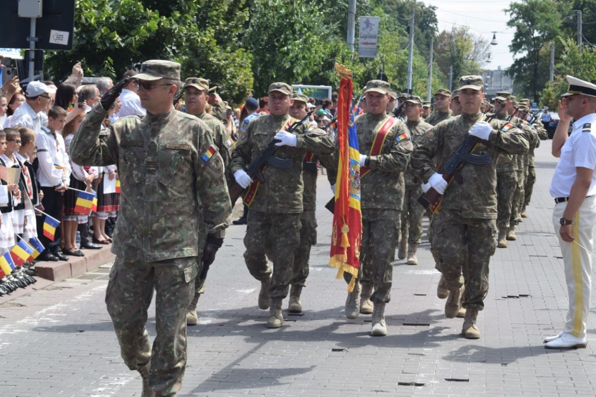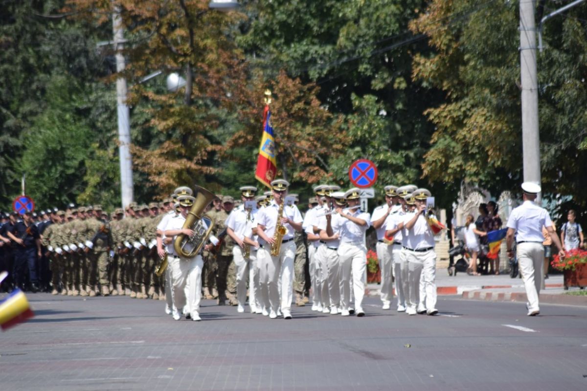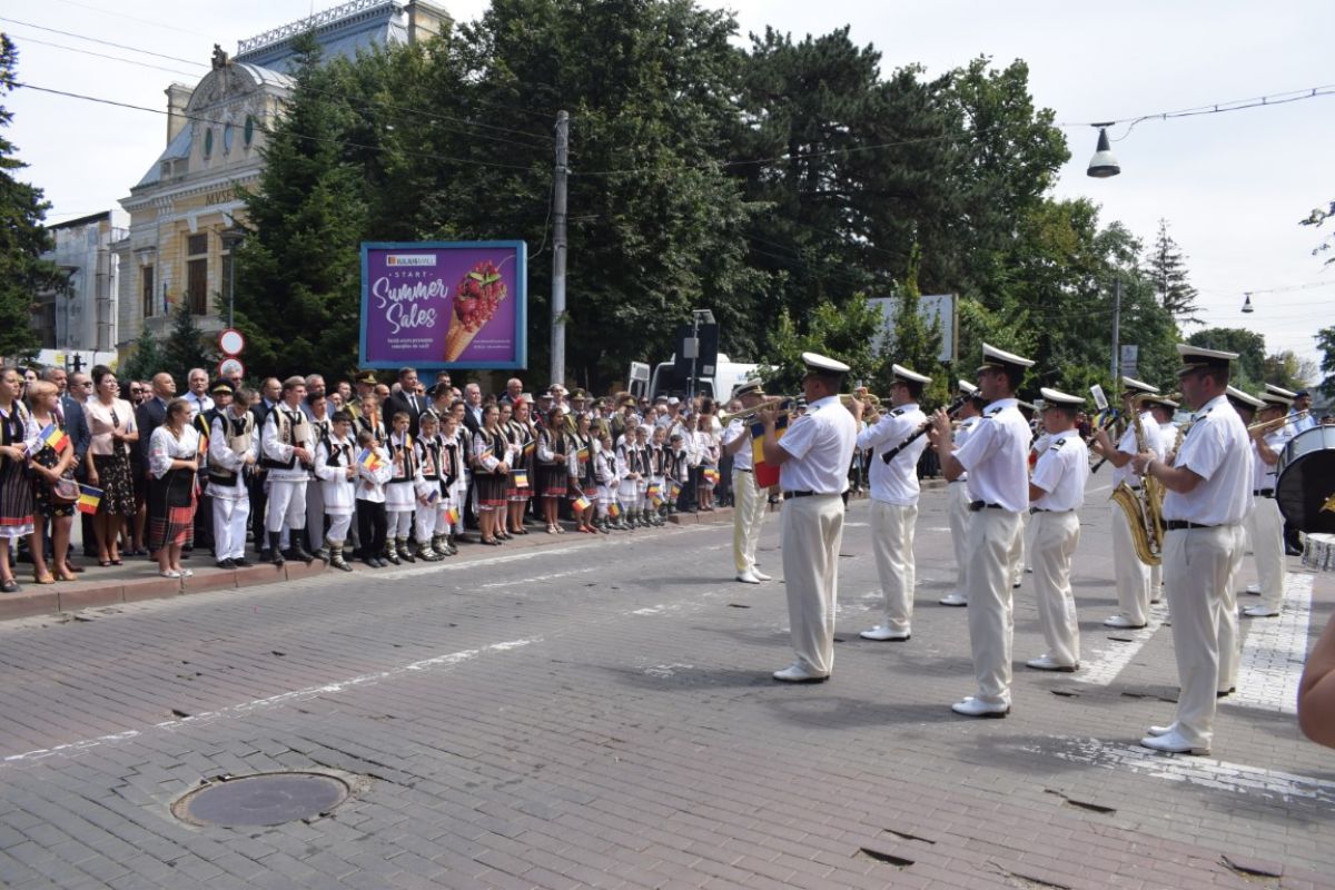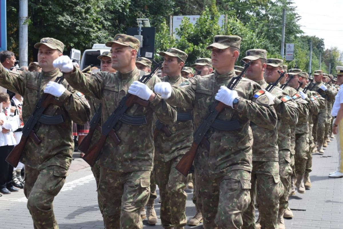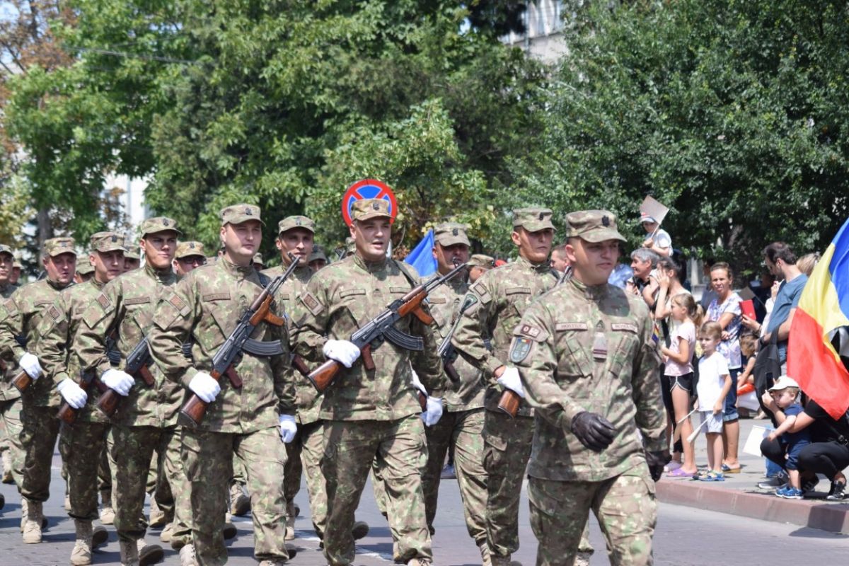 Oamenii prezenți au primit stegulețe tricolore pe care le-au fluturat când au defilat militarii. Niciun politician nu a luat cuvântul.