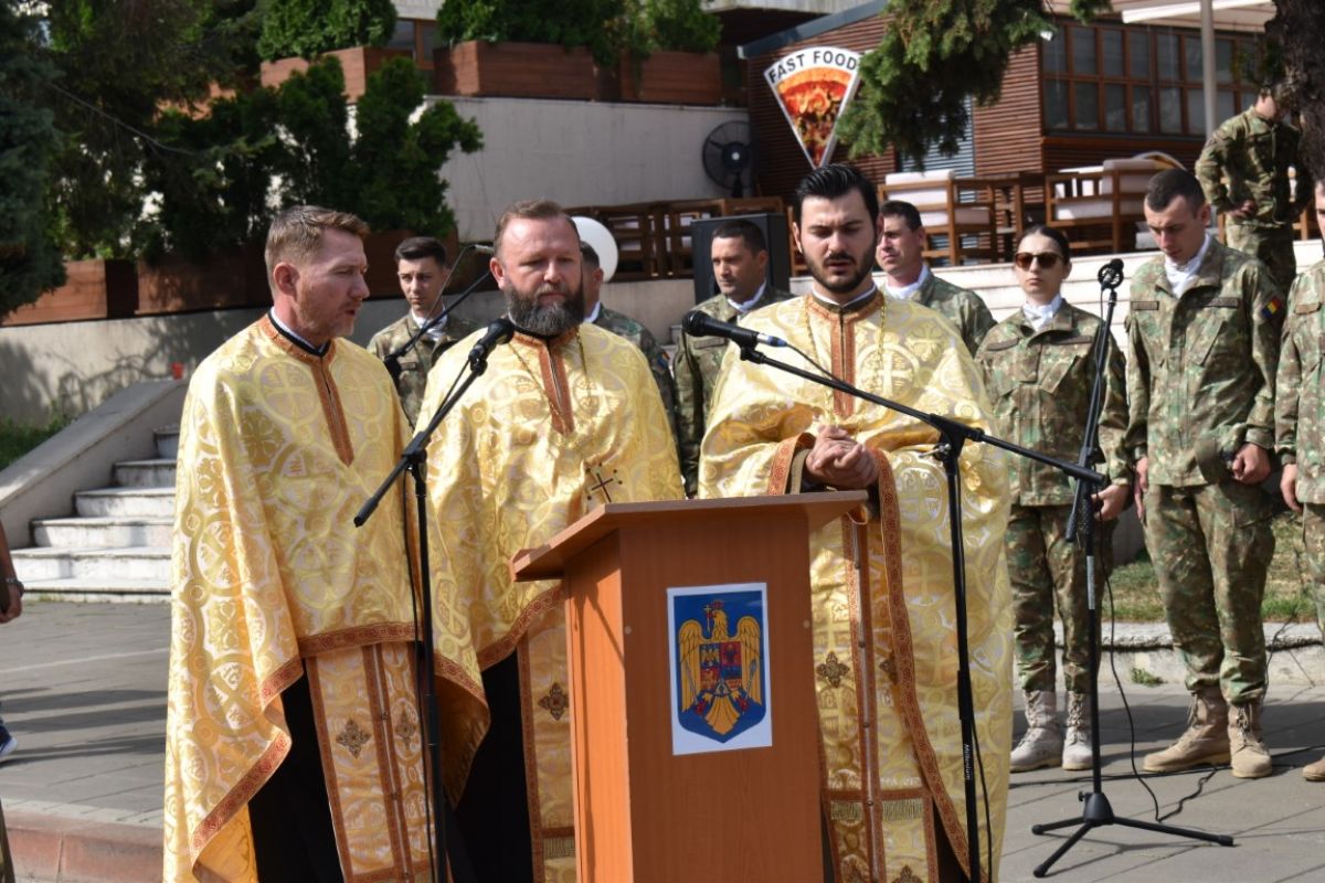 Un militar cu grade a dat citire semnificației Imnului, după ce în prealabil a fost oficiat și un moment religios.