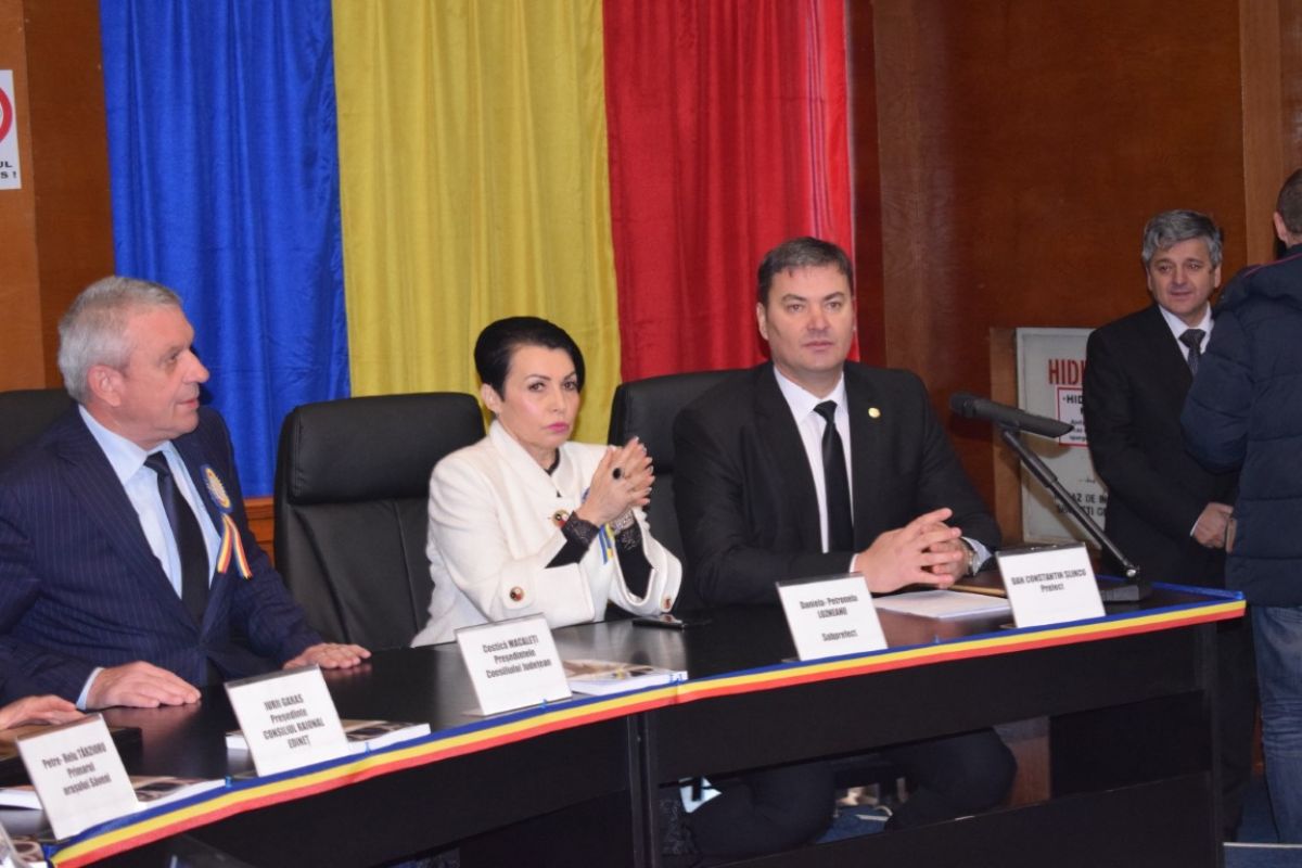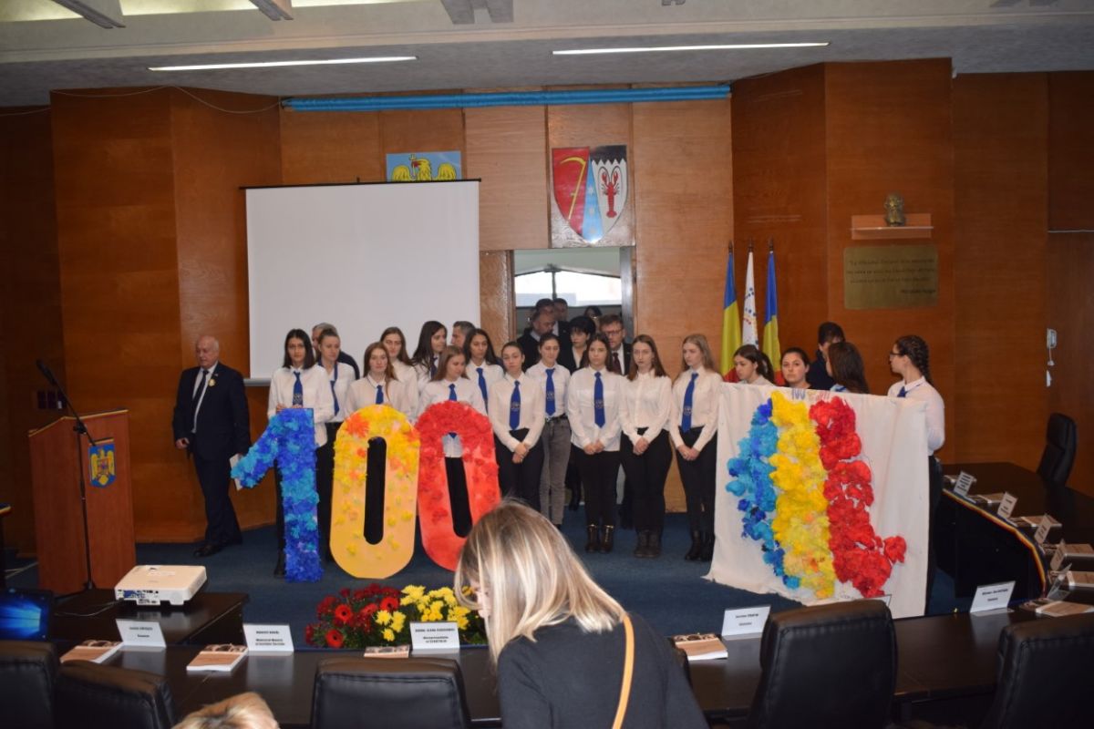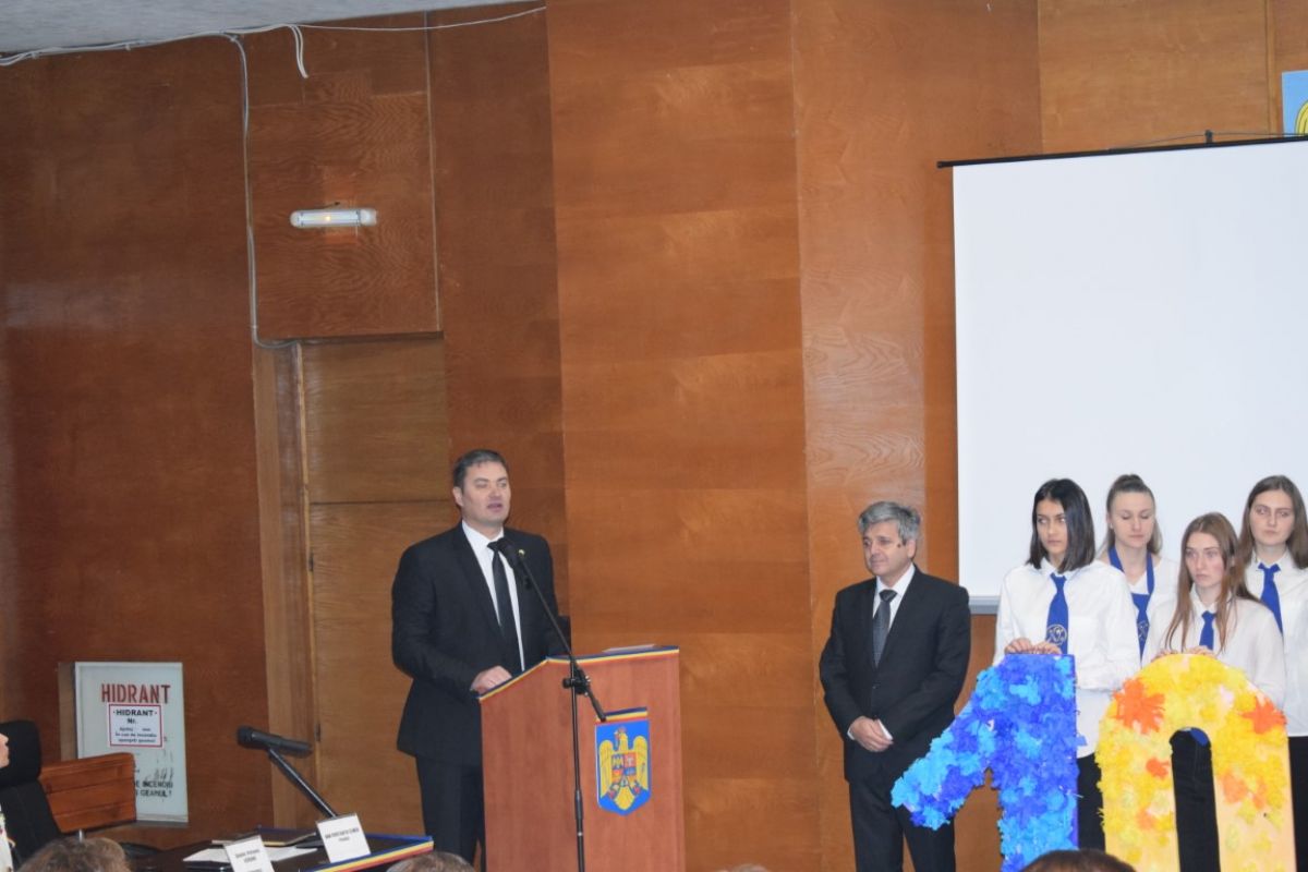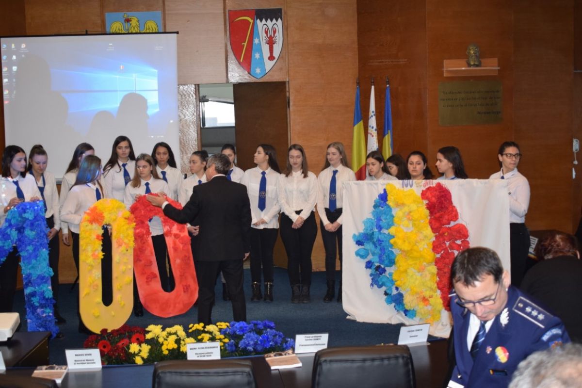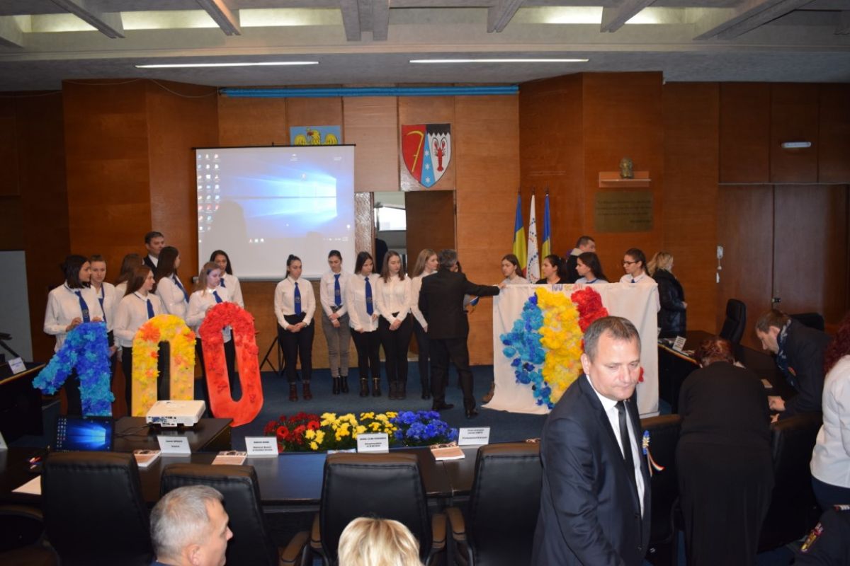 Manifestațiile au debutat în sala Nicolae Iorga a Prefecturii cu o ședință festivă deschisă cu intonarea Imnului de Stat de către corul Liceului Pedagogic Nicolae Iorga. Ulterior a luat cuvântul prefectul Dan Șlincu care s-a adresat tuturor invitaților din sală, mulți la număr având în vedere că toate scaunele au fost ocupate, iar unii participanți au asistat la eveniment, din picioare, răsfirați pe scări.